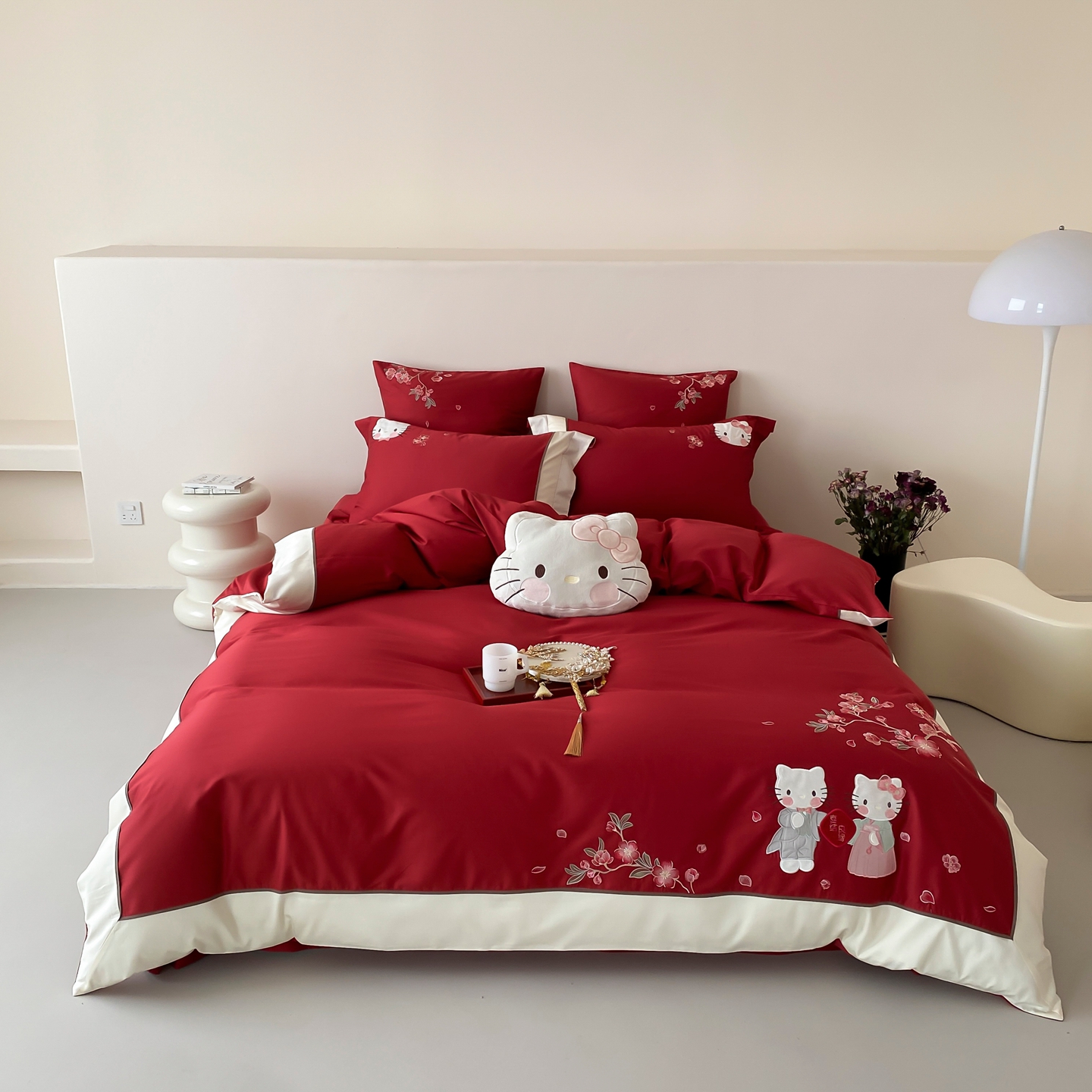 佳汐蓝家纺 2026春夏新款长绒棉纯棉刺绣四件套-蜜搭子 蜜搭子-红色