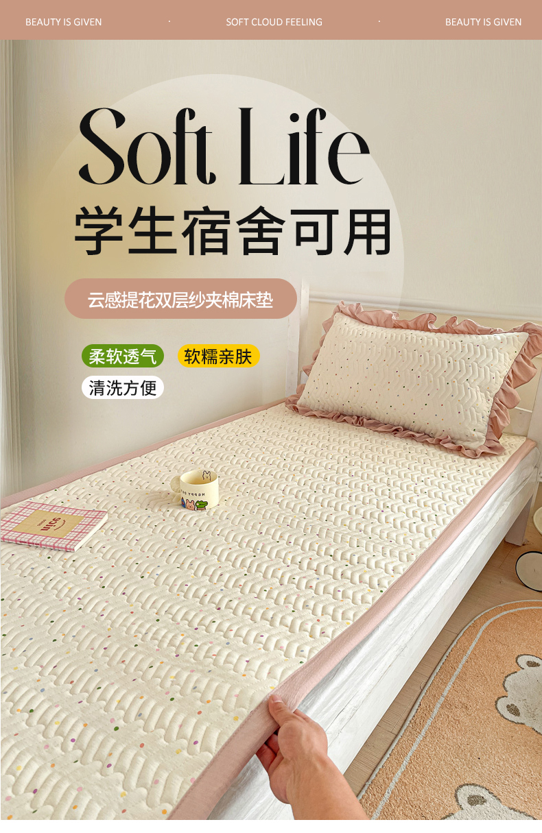 当前位置: 91家纺网 > 商品网购 > 床垫/床褥 > 普通床垫 > 纽缦家纺 2026新款云感提花双层纱学生床垫 像素小猫