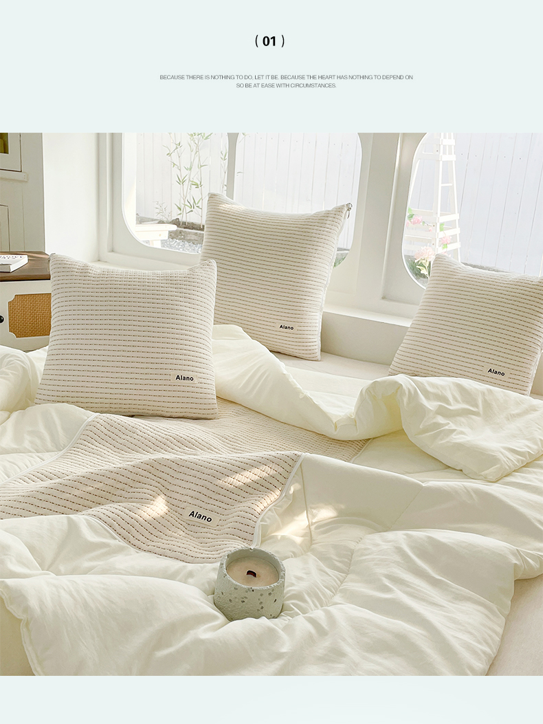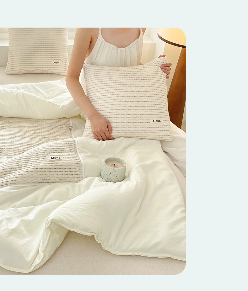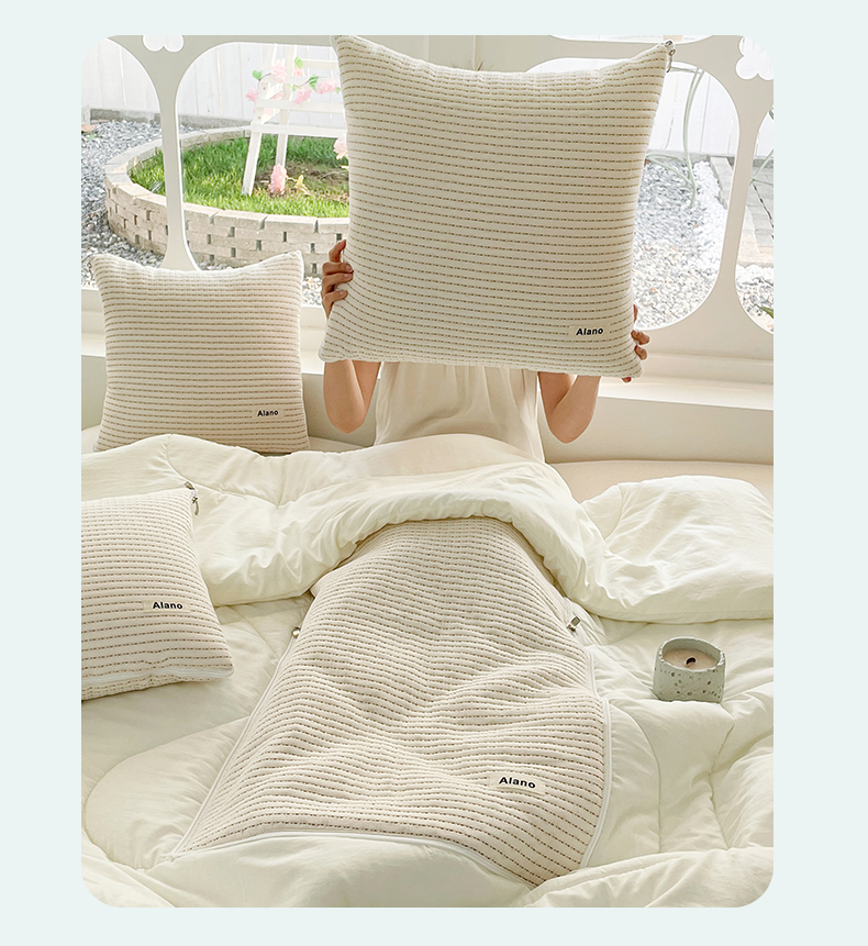 番茄+ 2026新款春夏色织全棉极简主义抱枕被 冰淇淋色
