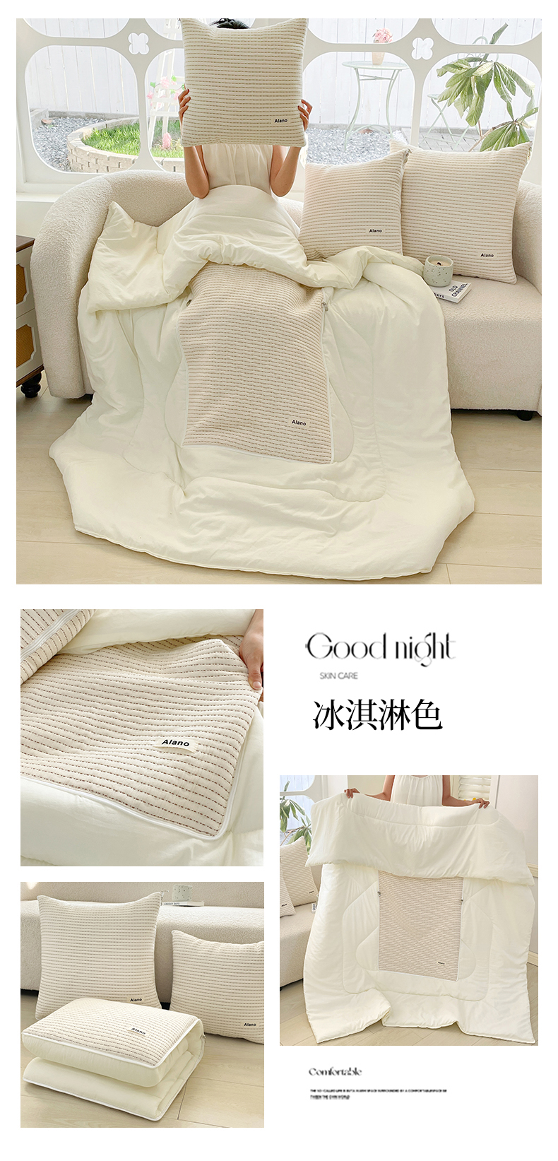 商品名称:番茄+ 2026新款春夏色织全棉极简主义抱枕被 冰淇淋色