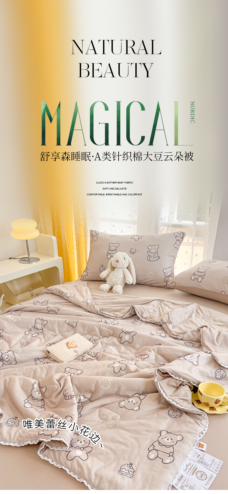 • 91家纺网 家纺一手货源 找家纺 默忆 2026新款A类母婴级针织棉大豆云朵被子被芯夏被空调被春秋冬被四季被 字母熊