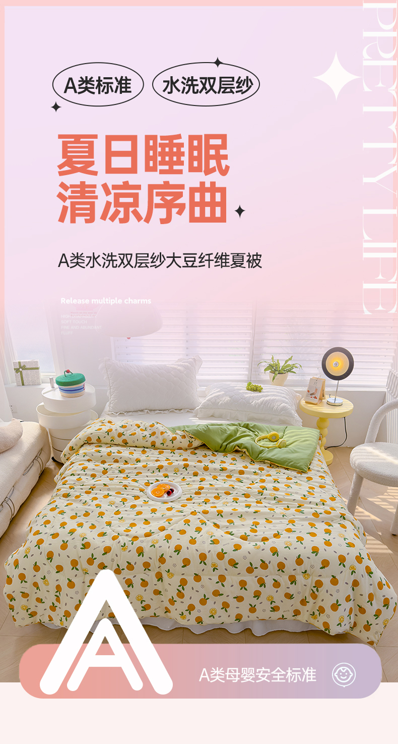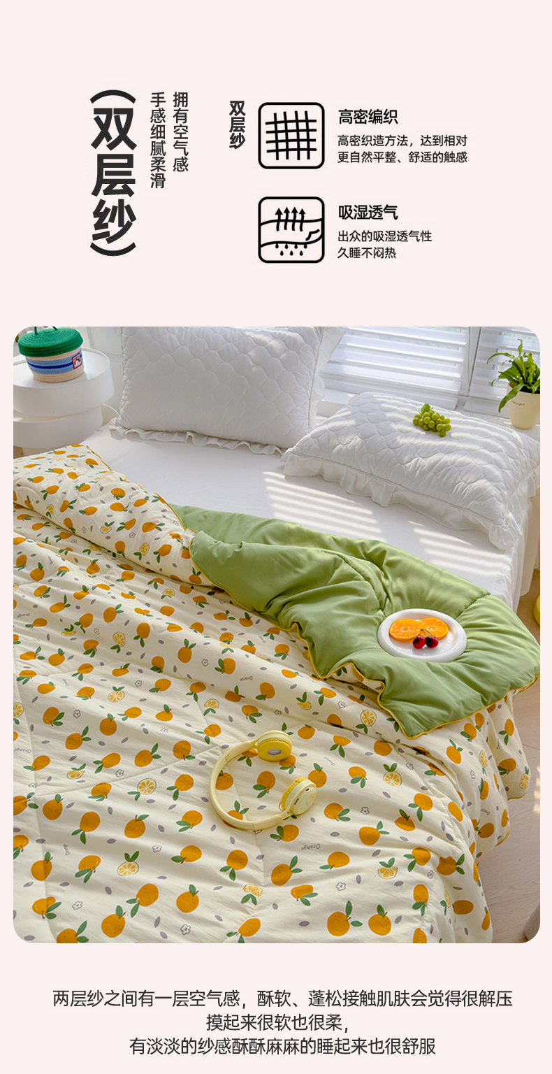 商品名称:默忆 2026新款水洗棉双层纱夏被夏凉被空调被被子被芯 小橘子