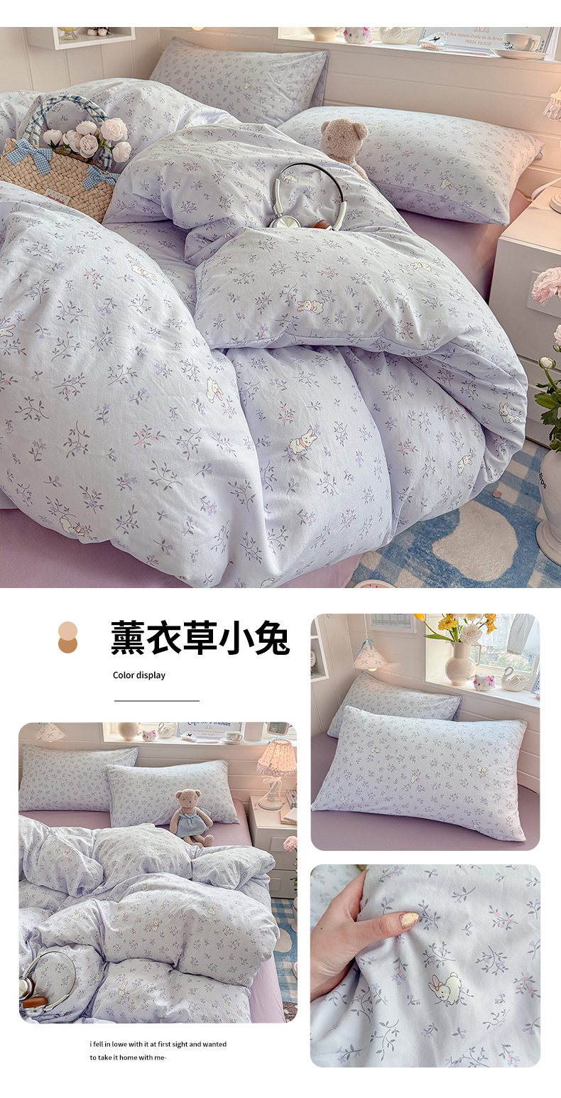 当前位置: 91家纺网 > 商品网购 > 床品套件 > 四件套 > 其它四件套 > 罗亿家纺 2026年新款泡芙水洗棉双层纱四件套 薰衣草小兔