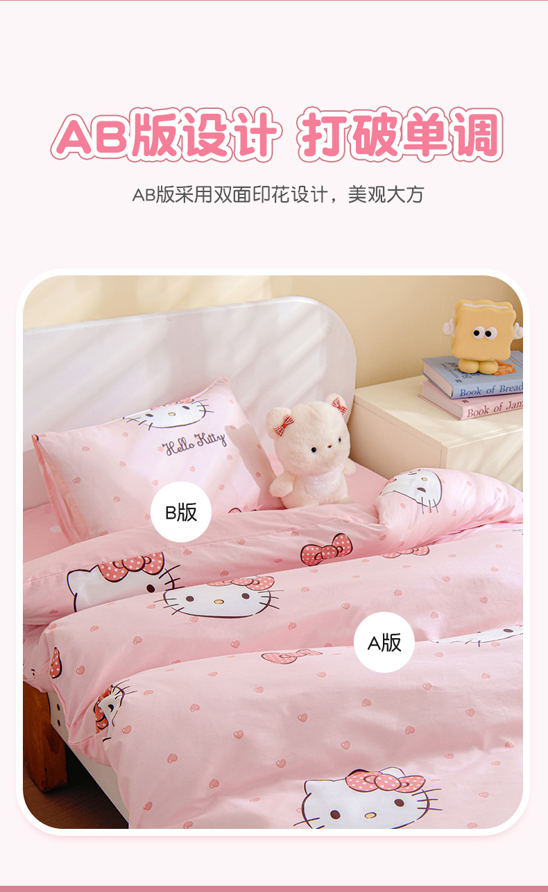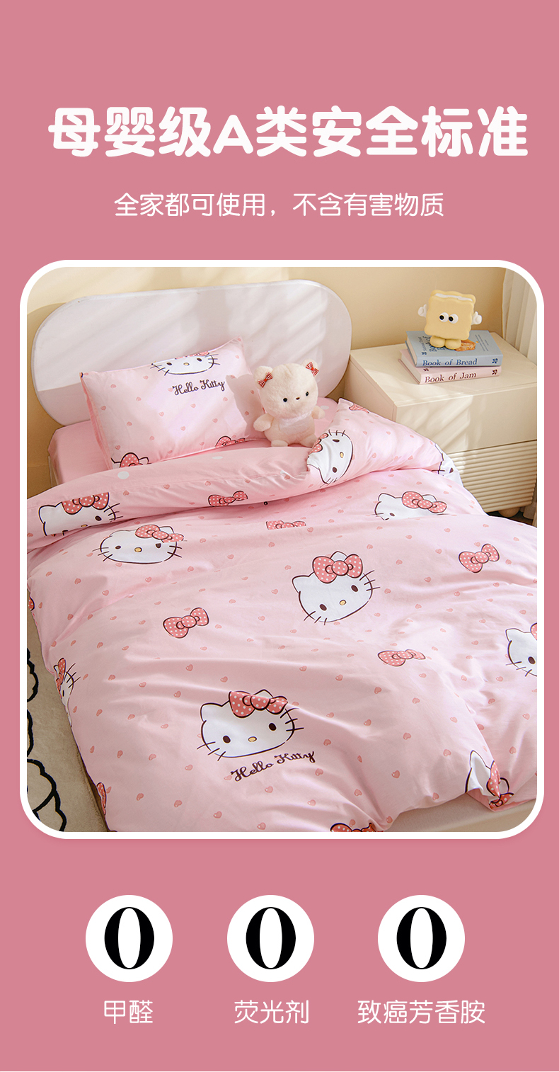 • 91家纺网 家纺一手货源 找家纺 孩子王家纺 2026新款卡通全棉纯棉正版授权三丽鸥幼儿园套件三件套六件套多件套 甜糯kt