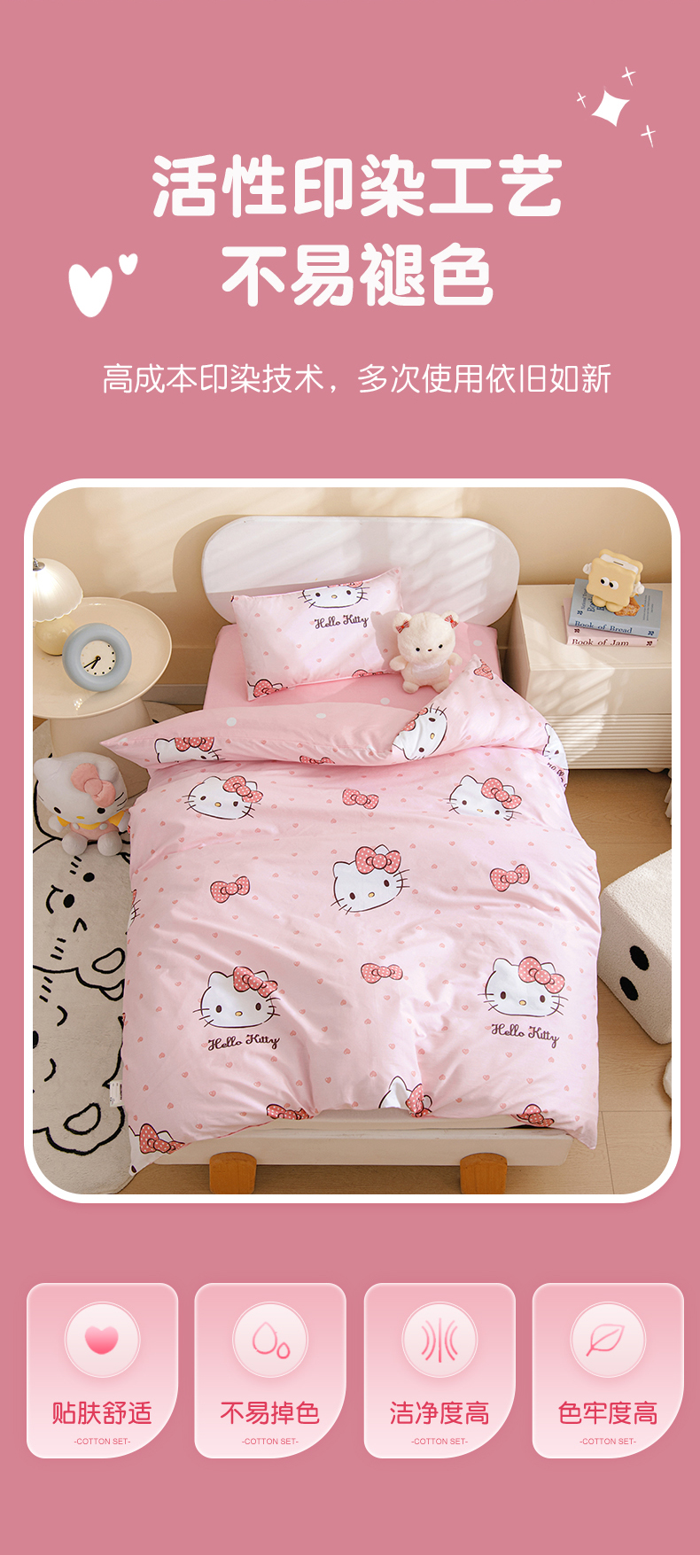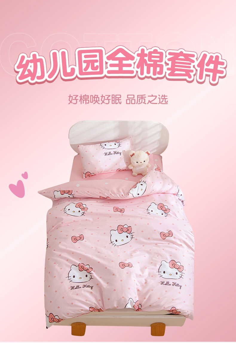 孩子王家纺 2026新款卡通全棉纯棉正版授权三丽鸥幼儿园套件三件套六件套多件套 甜糯kt