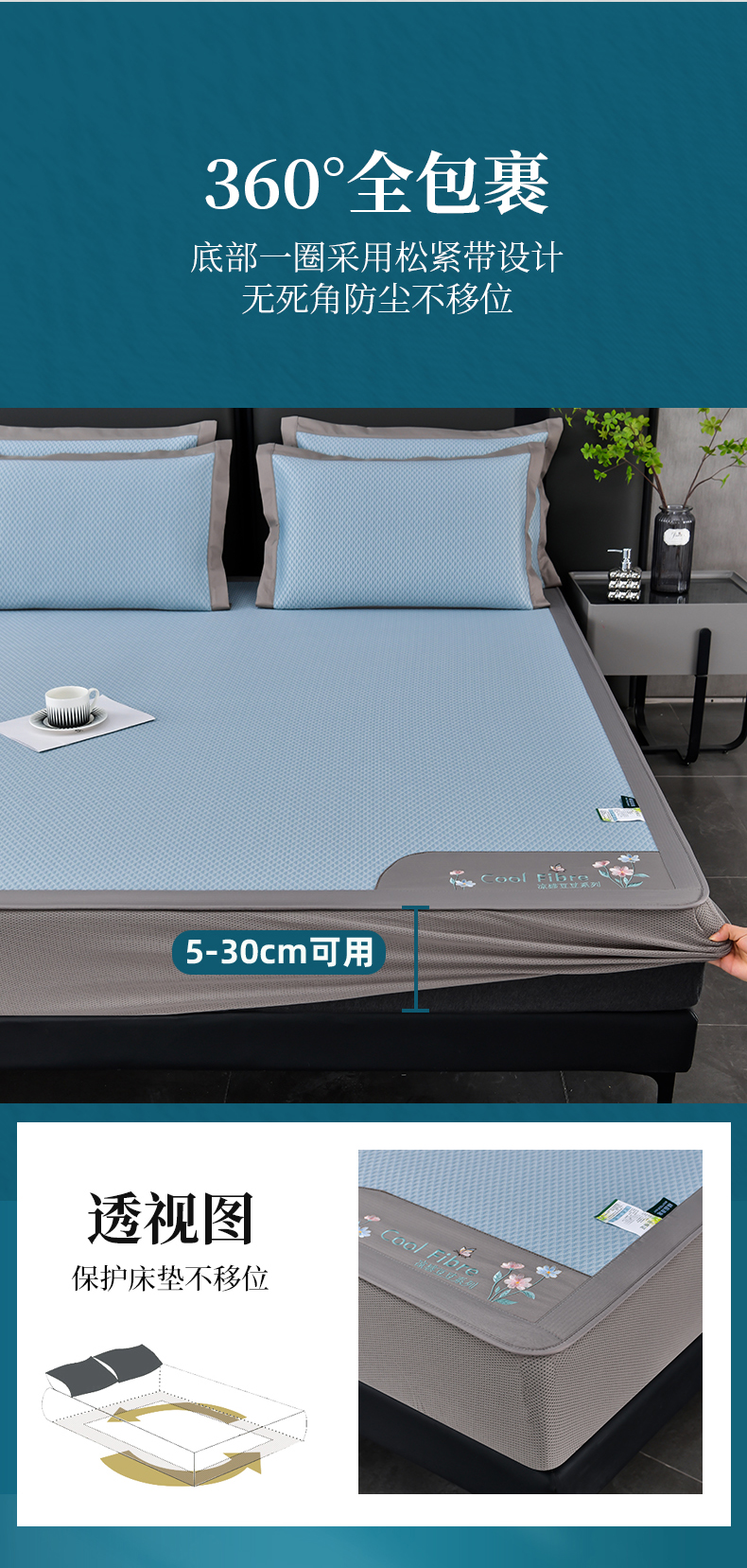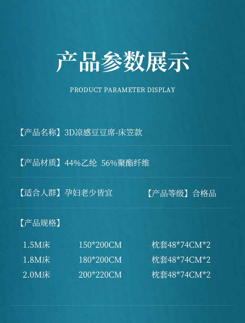 商品名称:小牛席业 2026新款7D速冷凉感豆豆席系列(床笠款) 天蓝