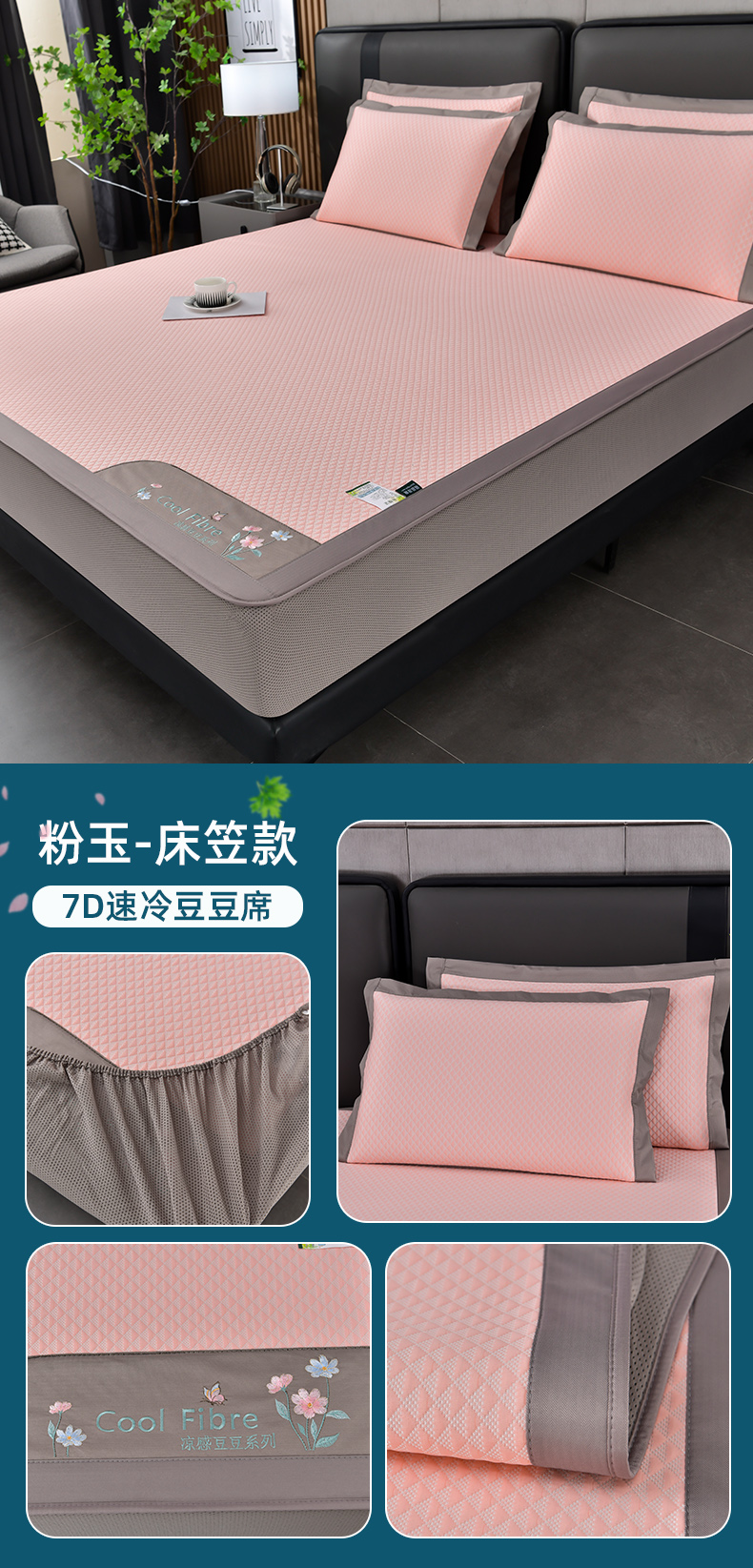 (总)小牛席业 2026新款半定位大提花凉感冰丝席(床笠款)凉席竹席藤席冰藤席乳胶席豆豆席,灰色,粉色,蓝色,香槟
