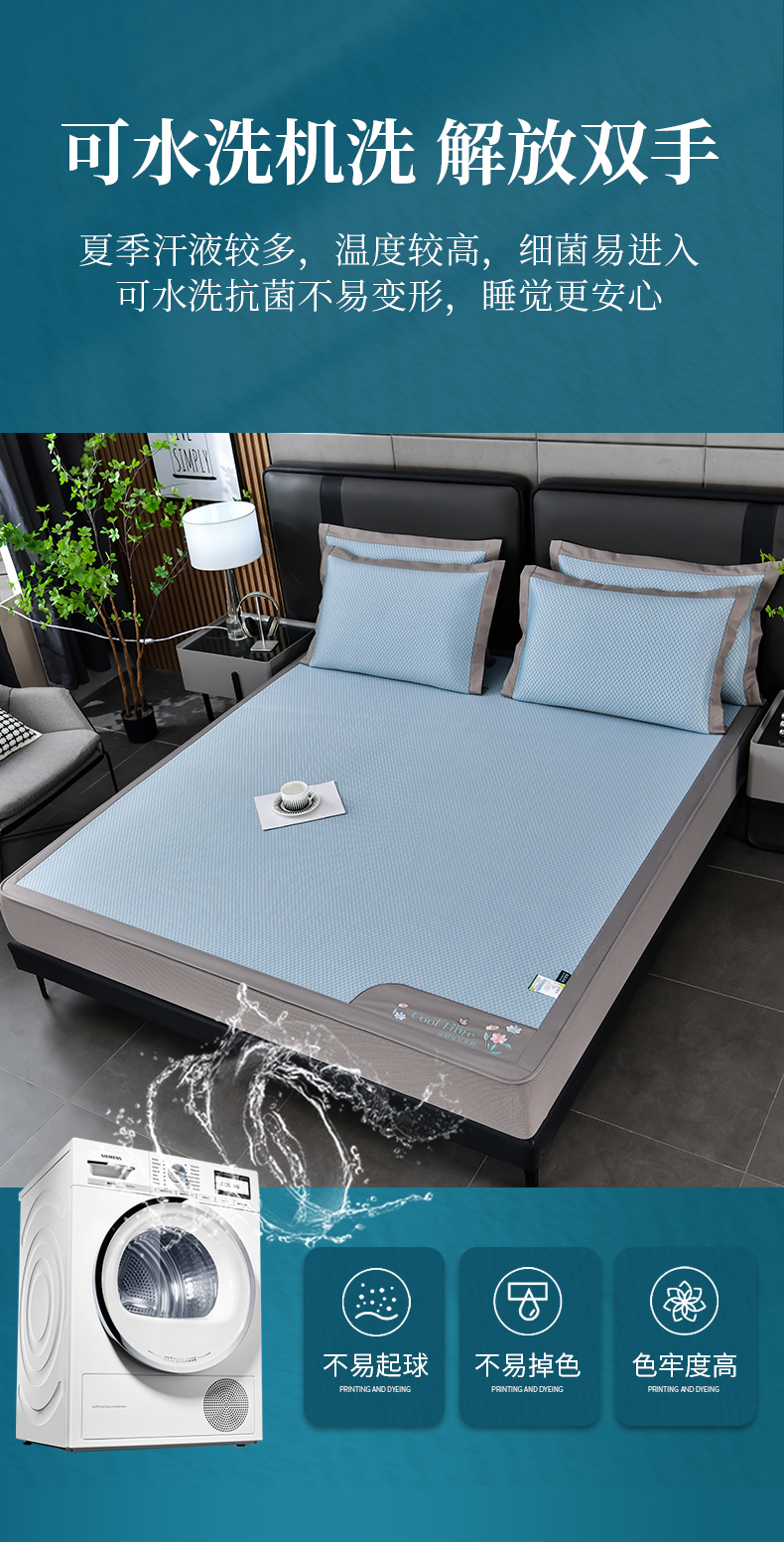 (总)2023新款超精密冰丝席-小斜纹系列-床笠款藤席凉席竹席,粉色,蓝色,绿色,银灰