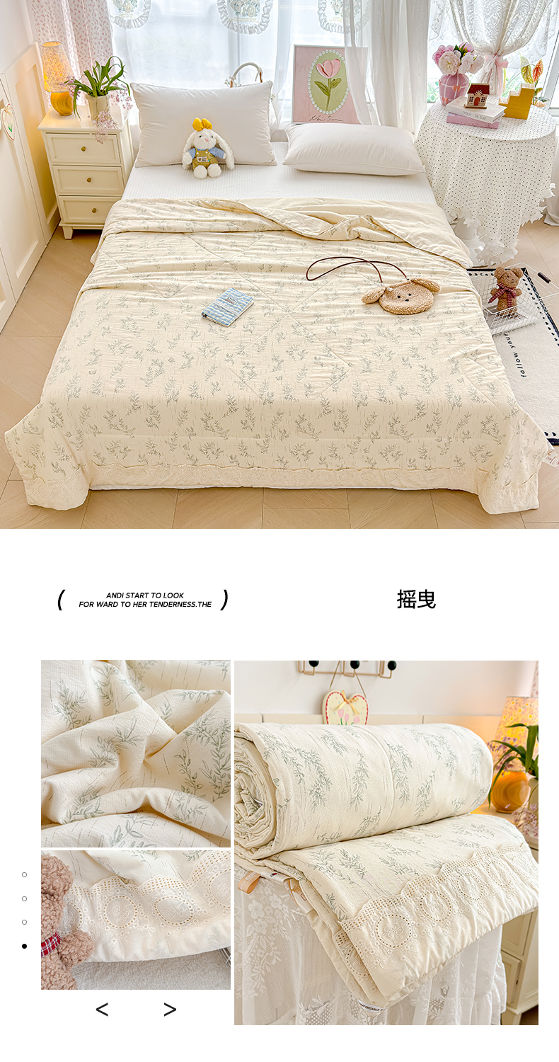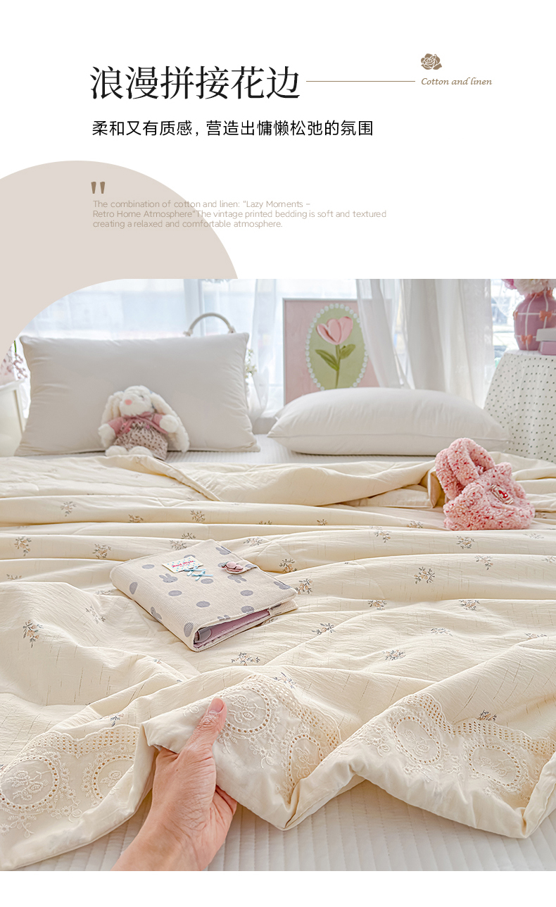 商品名称:芯恋家居 2026新款亚麻风云感花边夏被夏凉被空调被春秋被 花满春