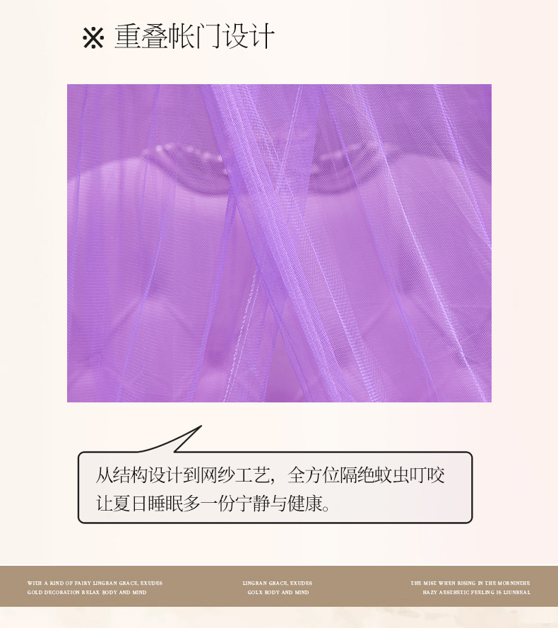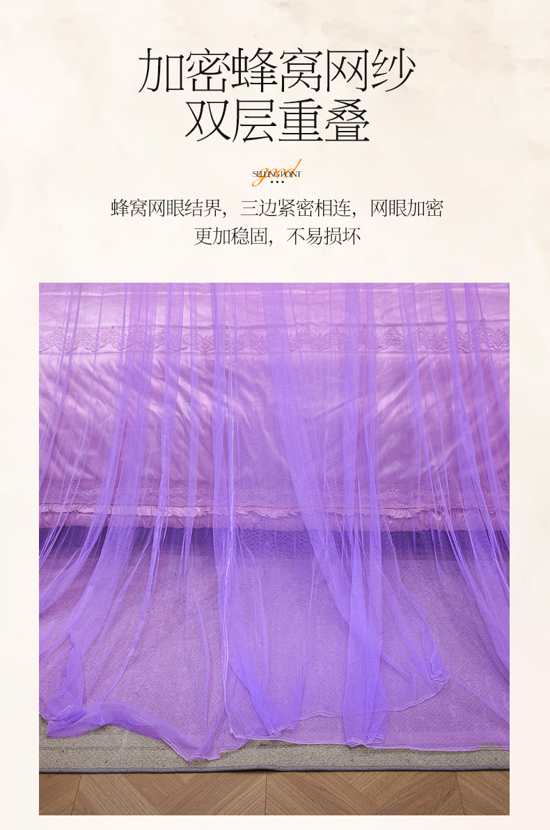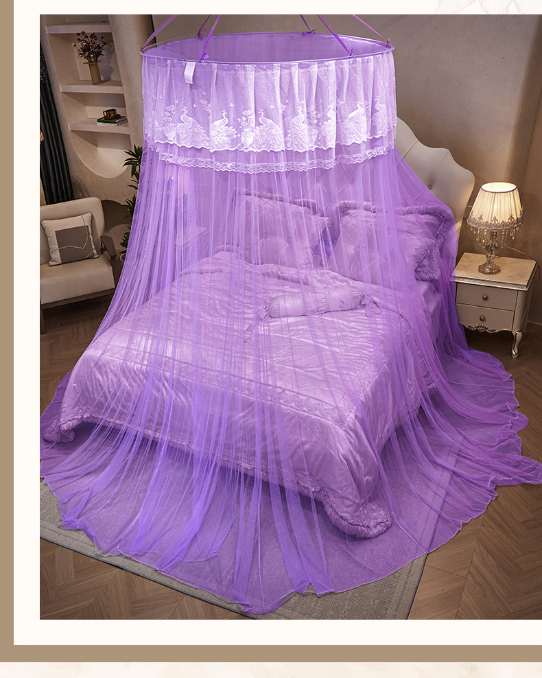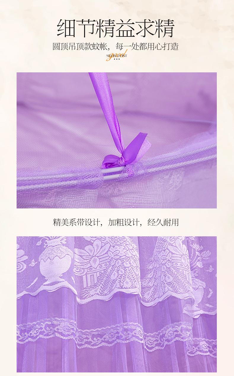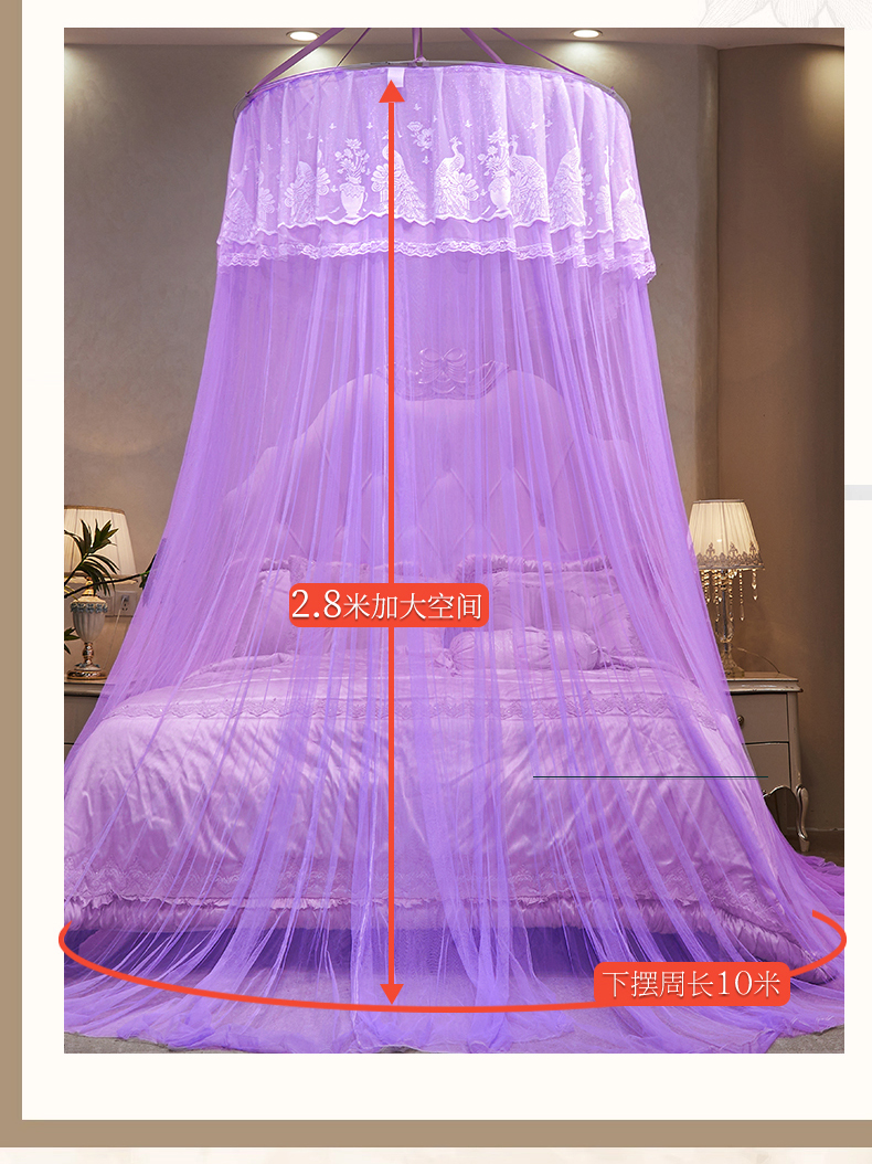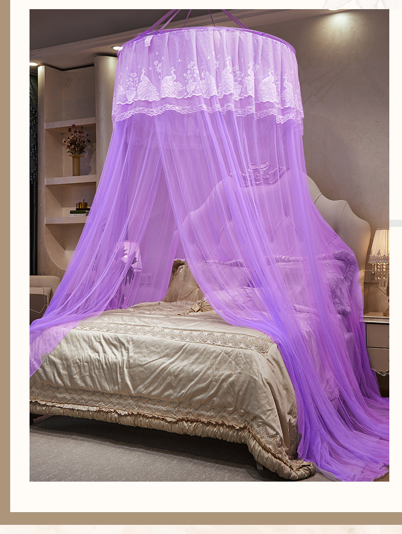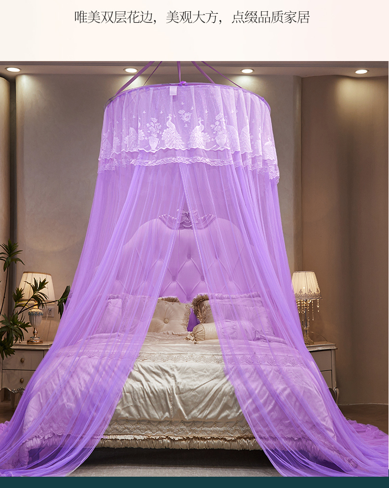 商品名称:舞夜盛世 2026新款圆顶吊床款唯美浪漫双层小花边蚊帐 Y-01-紫色