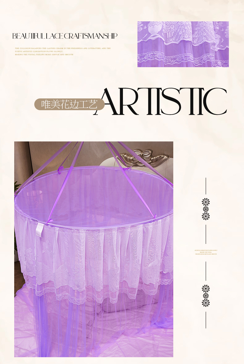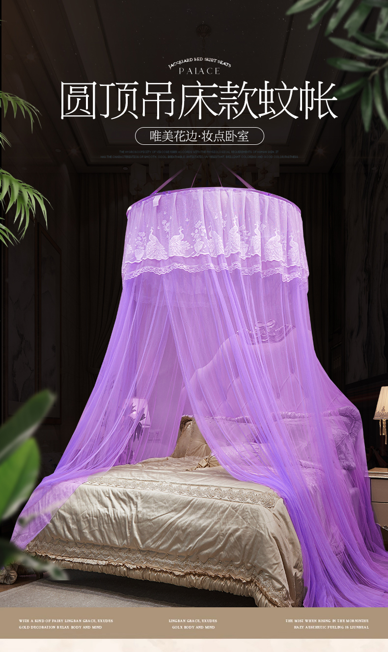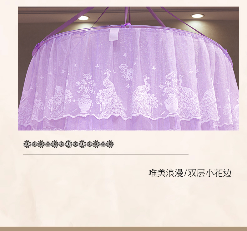 舞夜盛世 2026新款圆顶吊床款唯美浪漫双层小花边蚊帐 Y-01-紫色