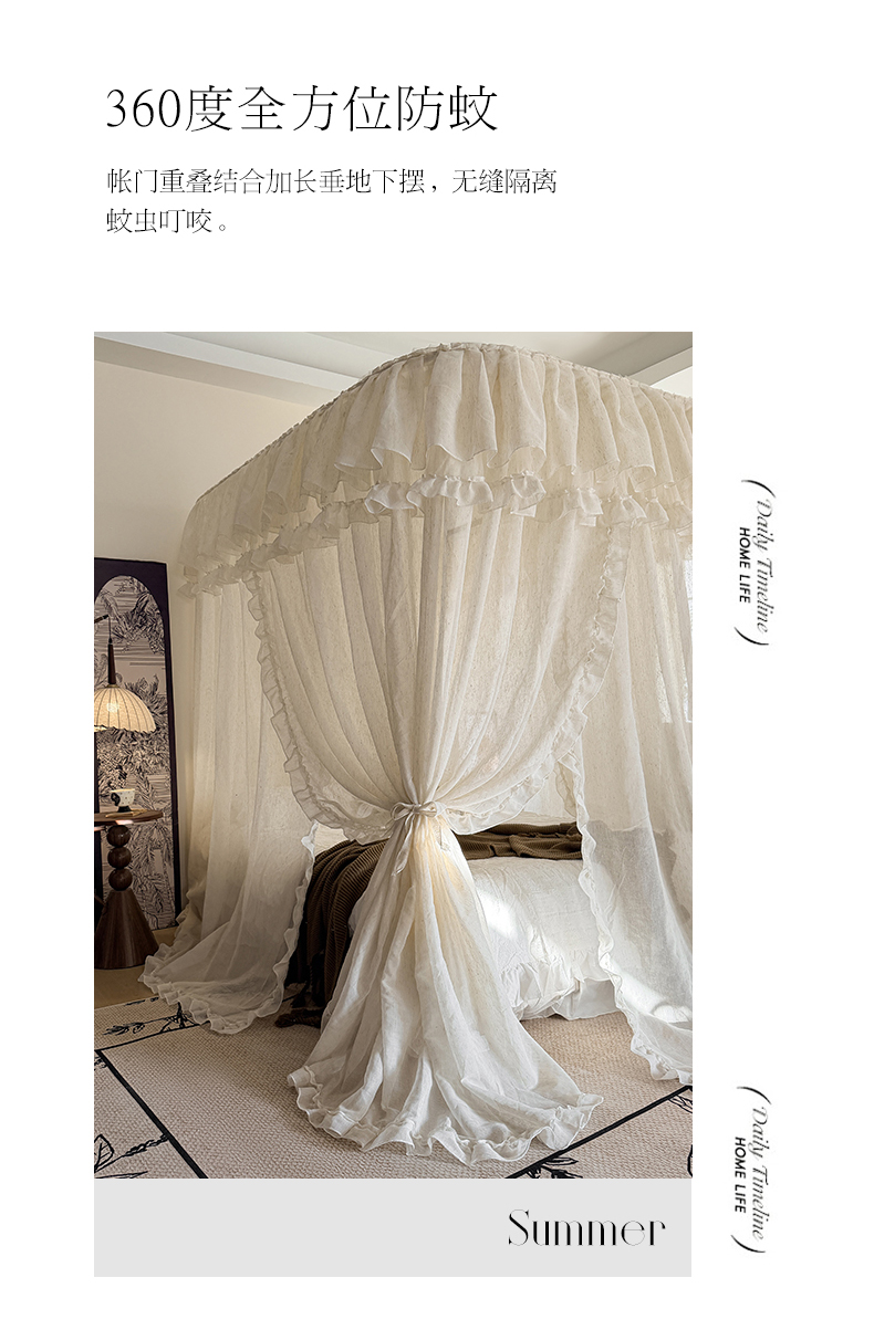 当前位置: 91家纺网 > 商品网购 > 床上用品 > 蚊帐 > 宫廷蚊帐 > 都市缘蚊帐 2026年新款3303禾风里棉麻轨道宫廷蚊帐1.5m 1.8m 3303禾风里-场景二