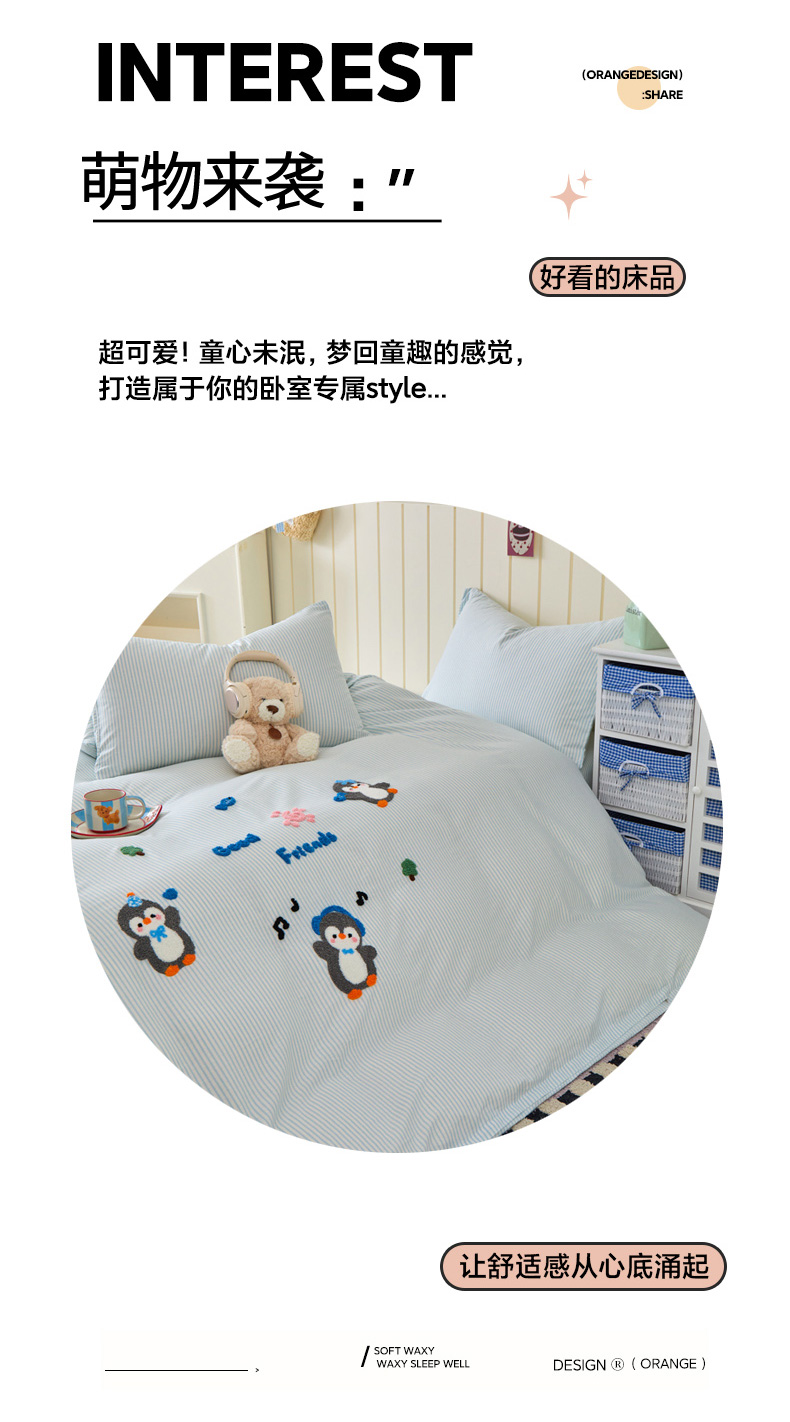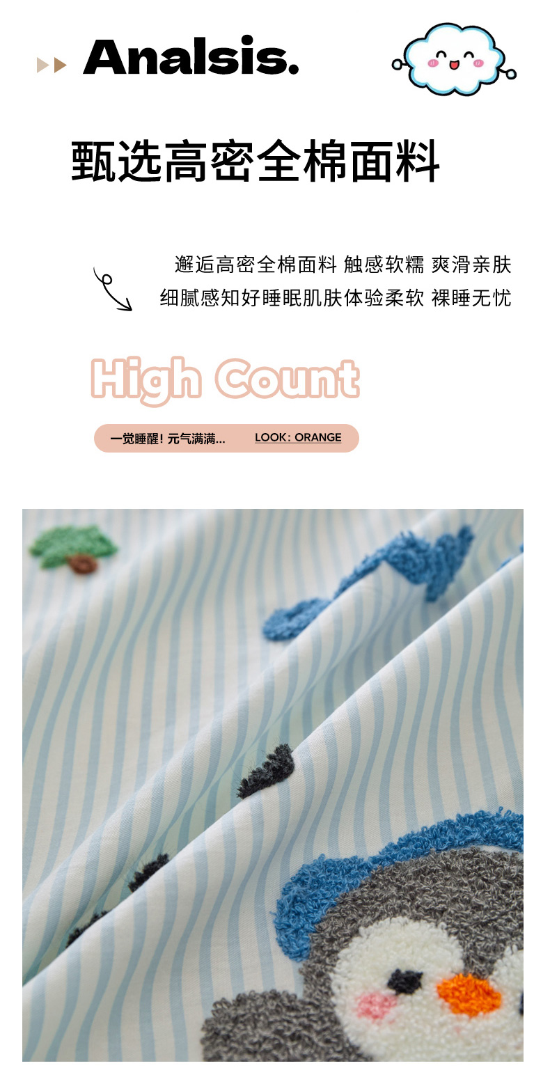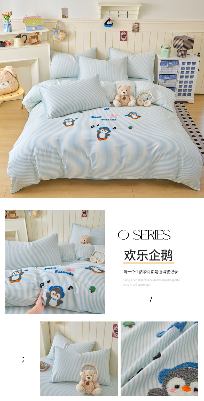 商品名称:倾慕家纺 2026新款全棉卡通毛巾绣系列四件套 欢乐企鹅