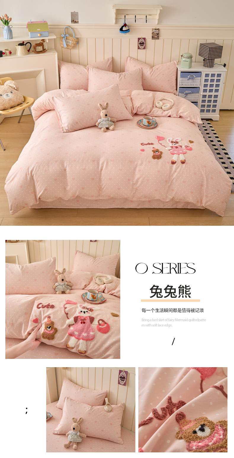 (总)倾慕家纺 2026新款全棉卡通毛巾绣系列四件套,彩虹马,格子小狗,欢乐企鹅,森林小熊,兔兔熊,小树恐龙,小兔女孩