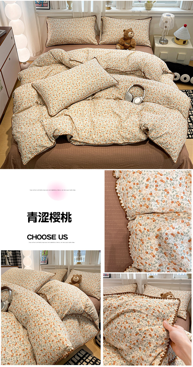 (总)仟网汇 2026新款云感泡芙棉小清新印花贝壳边四件套,豹纹凯蒂,蛋糕星人,费尔岛小狗,哈喽星人,黑白蝴蝶,萌趣小马,萌趣小熊,青涩樱桃,诗意柔,小汽车,摇摇星人,樱桃波点