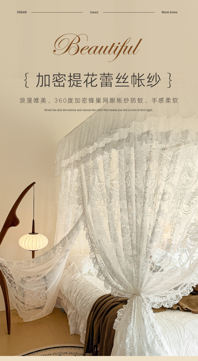 (总)都市缘蚊帐 2026新款春夏落地豪华高端蕾丝提花款导轨蚊帐-玫瑰庄园-905款,905玫瑰庄园-奶油白,905玫瑰庄园-奶油杏,905玫瑰庄园-奶油玉