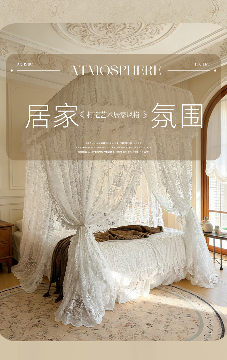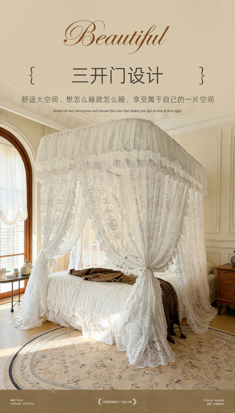 (总)都市缘蚊帐 2026新款浪漫905多丽棉纱落地宫廷蚊帐,麦芽杏-场景1,麦芽杏-场景2,粉扑色,摩卡,云雾白