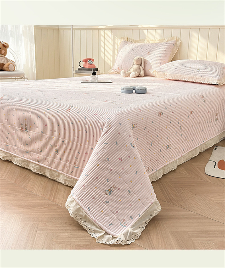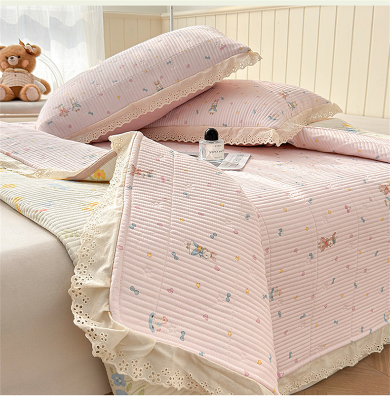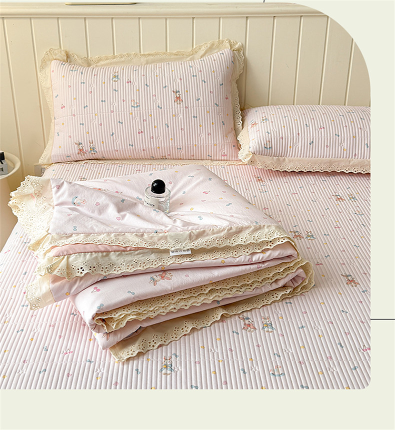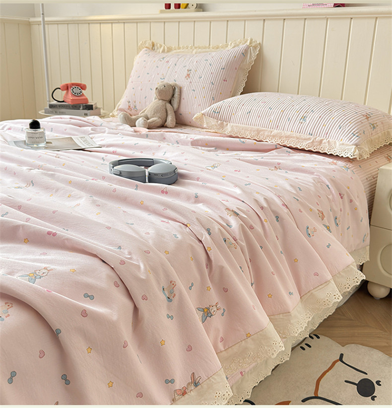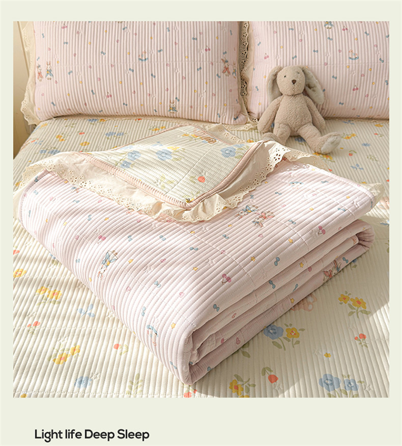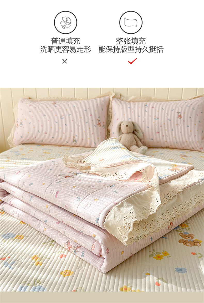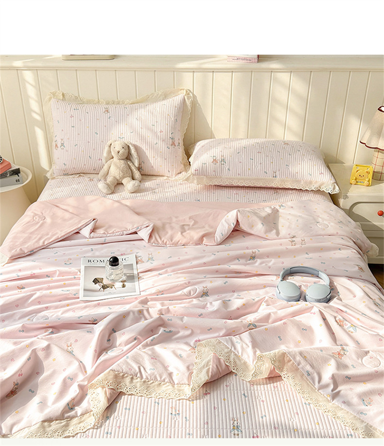 雯豆家纺 2026春夏新款A类凉感花边床盖夏被夏凉被空调被四件套 兔子公主