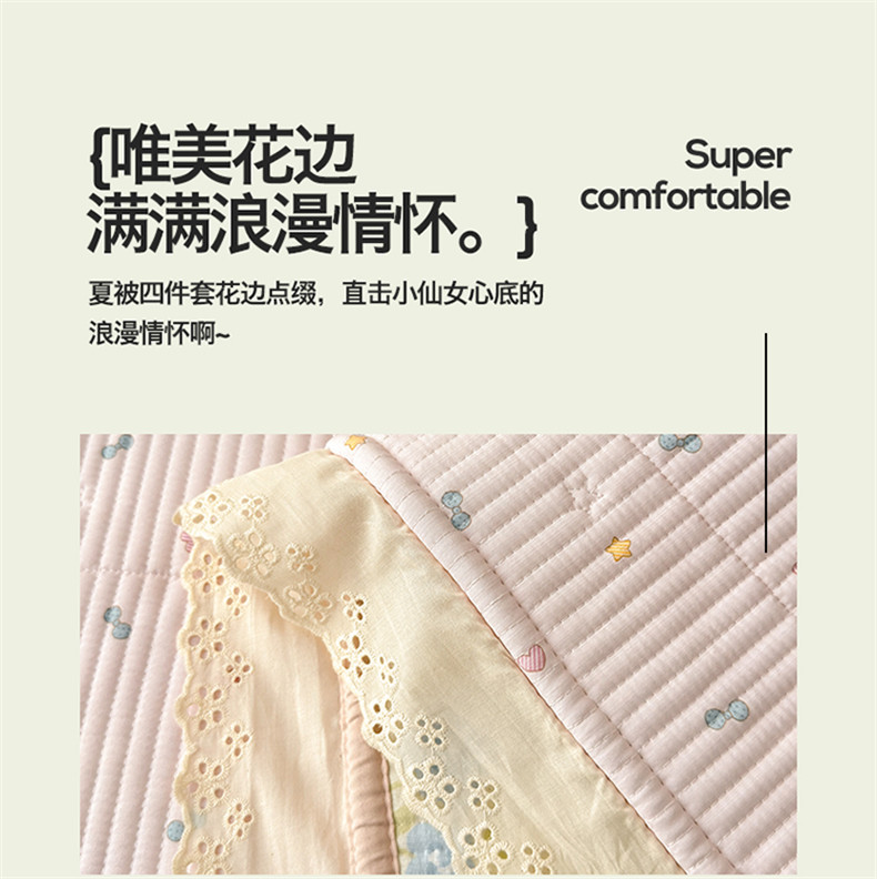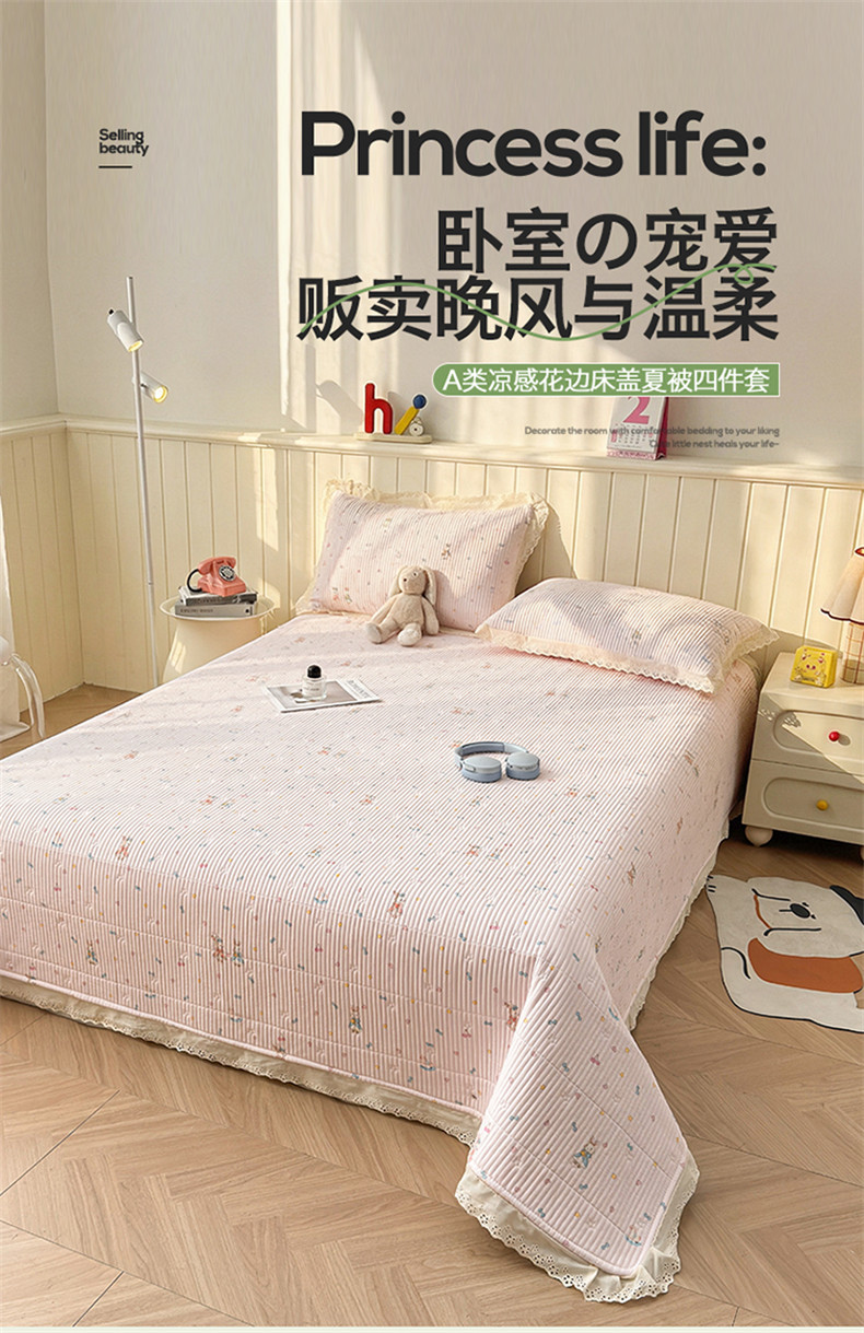 • 91家纺网 家纺一手货源 找家纺 雯豆家纺 2026春夏新款A类凉感花边床盖夏被夏凉被空调被四件套 兔子公主