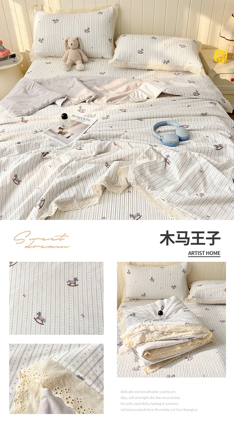 (总)雯豆家纺 2026春夏新款A类凉感花边床盖夏被夏凉被空调被四件套,彩色小熊,蛋糕小熊,蝶甜小筑,多彩蝴蝶,嗨皮熊,木马王子,暖汪汪,兔子公主,雾杏枝影,熊趣小窝,修勾木马(粉),修勾木马(蓝)