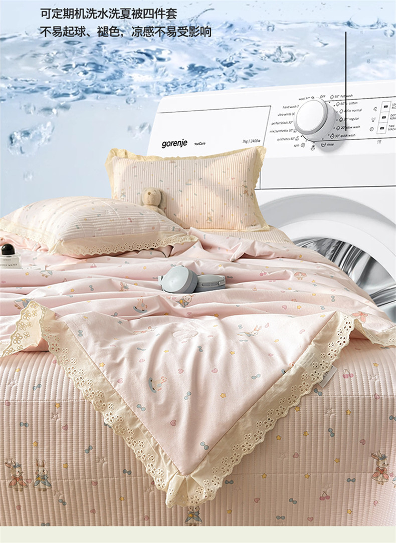 当前位置: 91家纺网 > 商品网购 > 被子 > 夏被 > 雯豆家纺 2026春夏新款A类凉感花边床盖夏被夏凉被空调被四件套 兔子公主