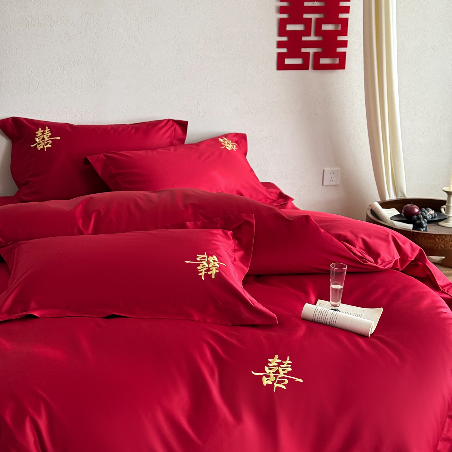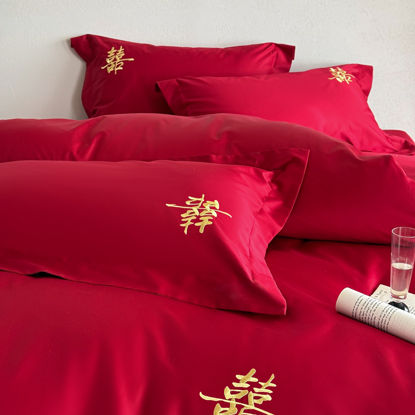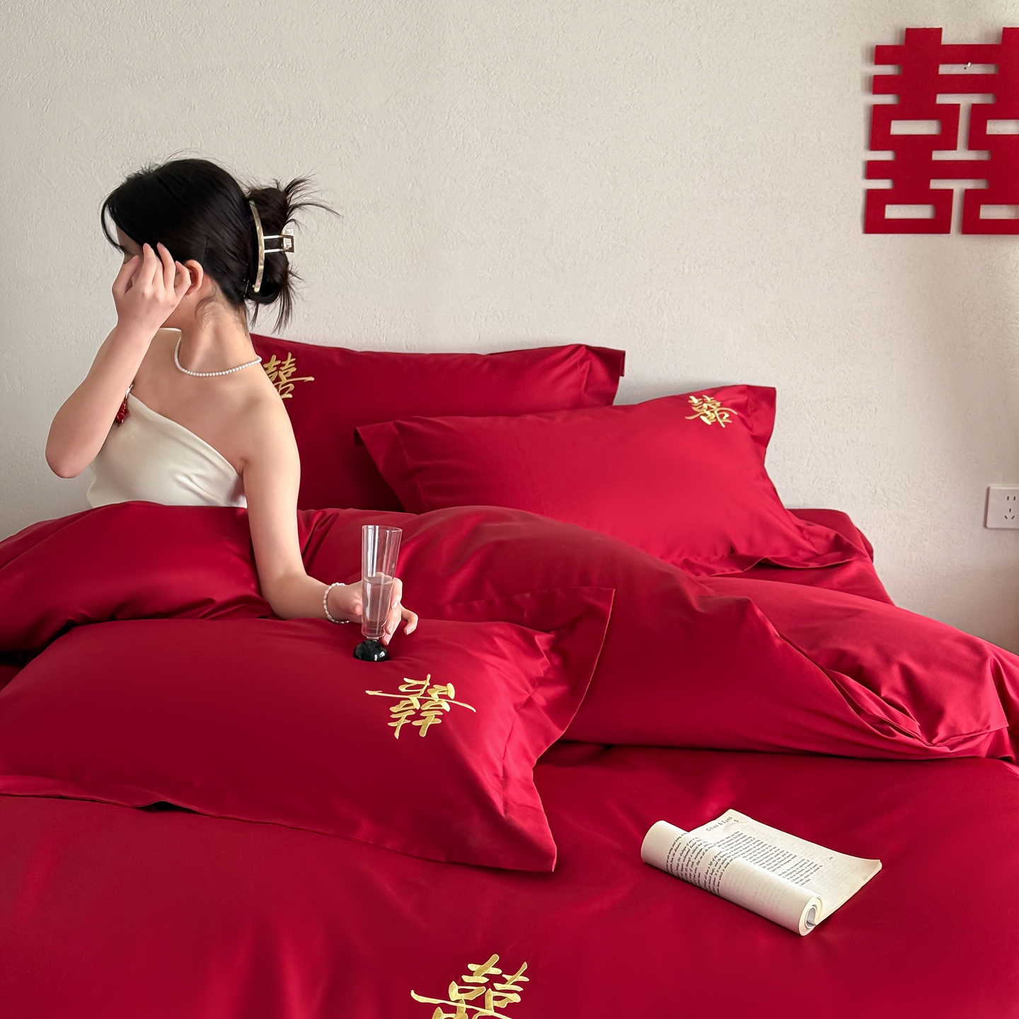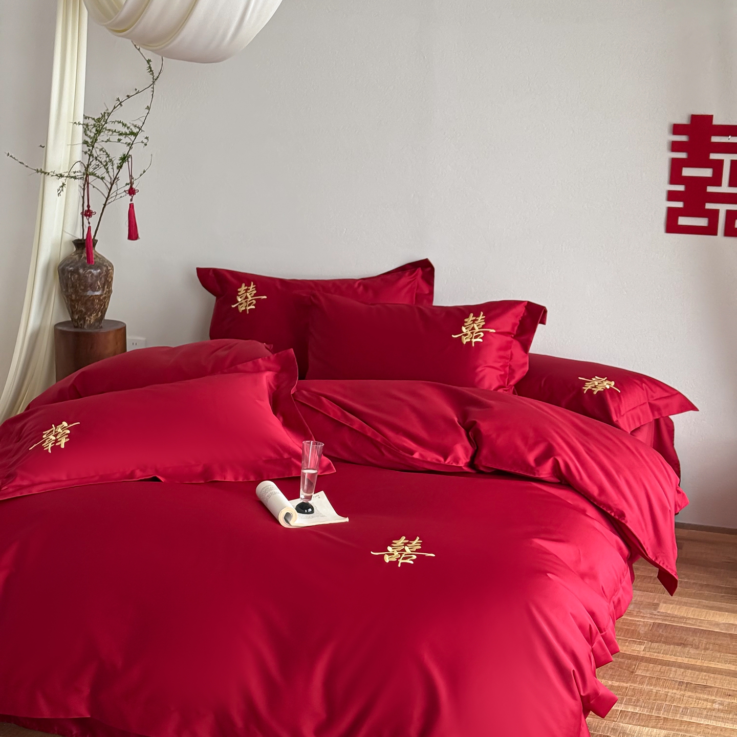 (总)西西家居 2026新款100S长绒棉纯棉刺绣四件套-家有囍事(含精致红色礼盒)