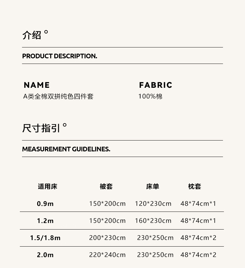 商品名称:(总)寐眠 2026新款全棉纯棉纯色双拼四件套