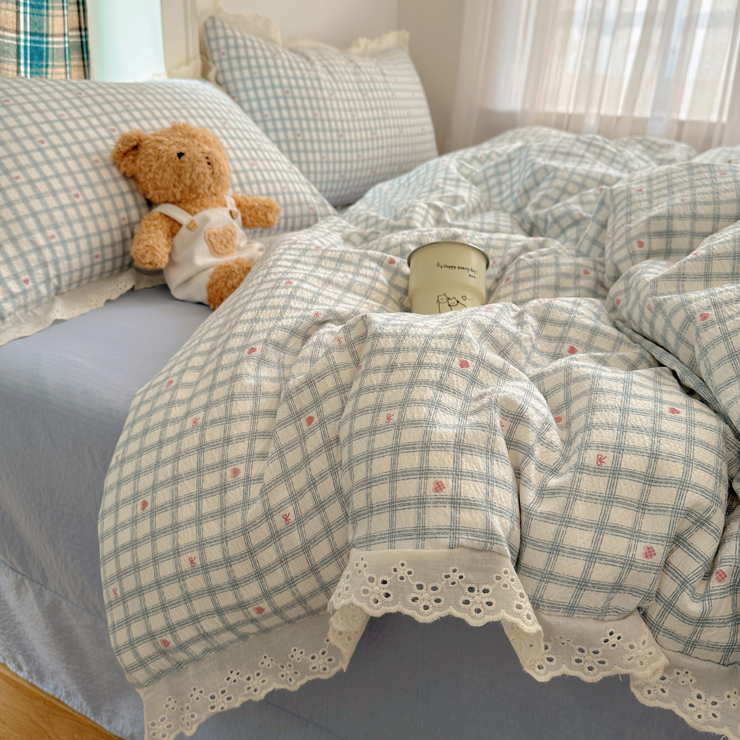 (总)一比一家纺 2026新款古法水洗仿棉云感纱A类四件套,知秋,白兰地,彩波波,草莓点点,格纹狗,嗨皮狗,赫莲娜,花千朵,花絮,酱果,蓝小格,莉莉安,梦幻灰,南瓜果果,葡萄,浅梦,森屿,疏影,甜心草莓,甜心喵,条纹狗,童趣,小黄花,小木马,小时光,小幸运,修修狗,薰衣草,灰樱桃,樱桃熊,鱼多多,组合图仅做展示不可下单,快乐时光