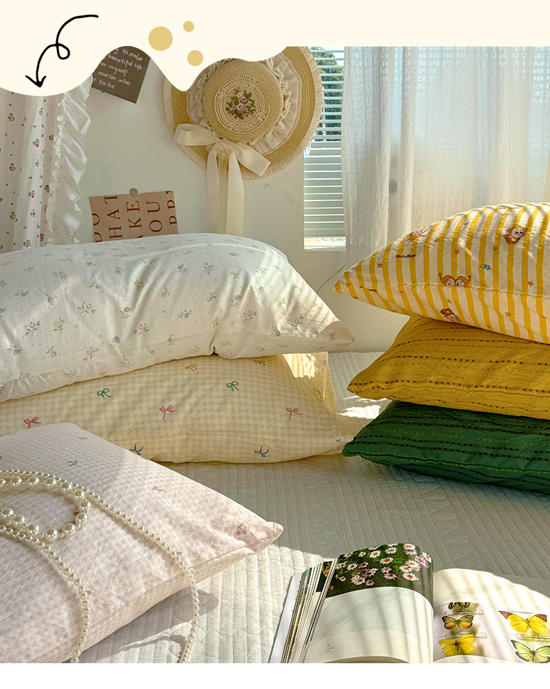 (总)多品家纺 2026春夏新款超柔奶呼呼双层纱枕套 枕套单件,组合图仅供展示不可下单,白露紫,薄荷焦糖,薄荷青柚,橘夏,樱桃粉,元气蝴蝶结