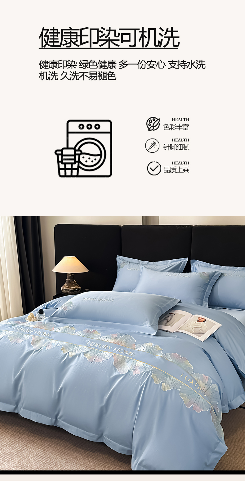 当前位置: 91家纺网 > 商品网购 > 床品套件 > 四件套 > 全棉普通四件套 > 犇牛仓储供应链 2026新款A类全棉刺绣四件套-花漾 花漾-柔雾蓝