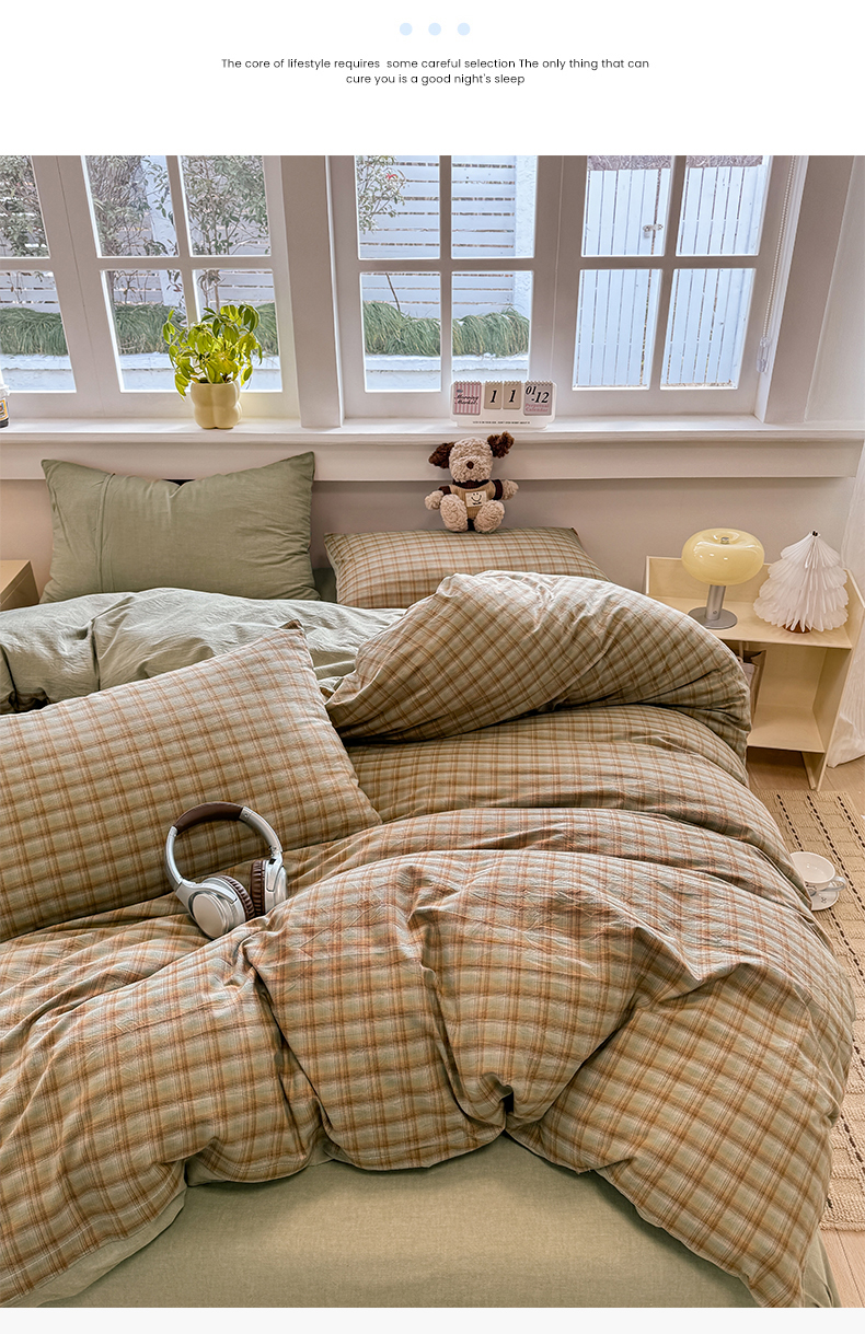 当前位置: 91家纺网 > 商品网购 > 床品套件 > 四件套 > 全棉普通四件套 > 梦依依 2026新款全棉色织水洗棉拉链款四件套 云岫绿咖
