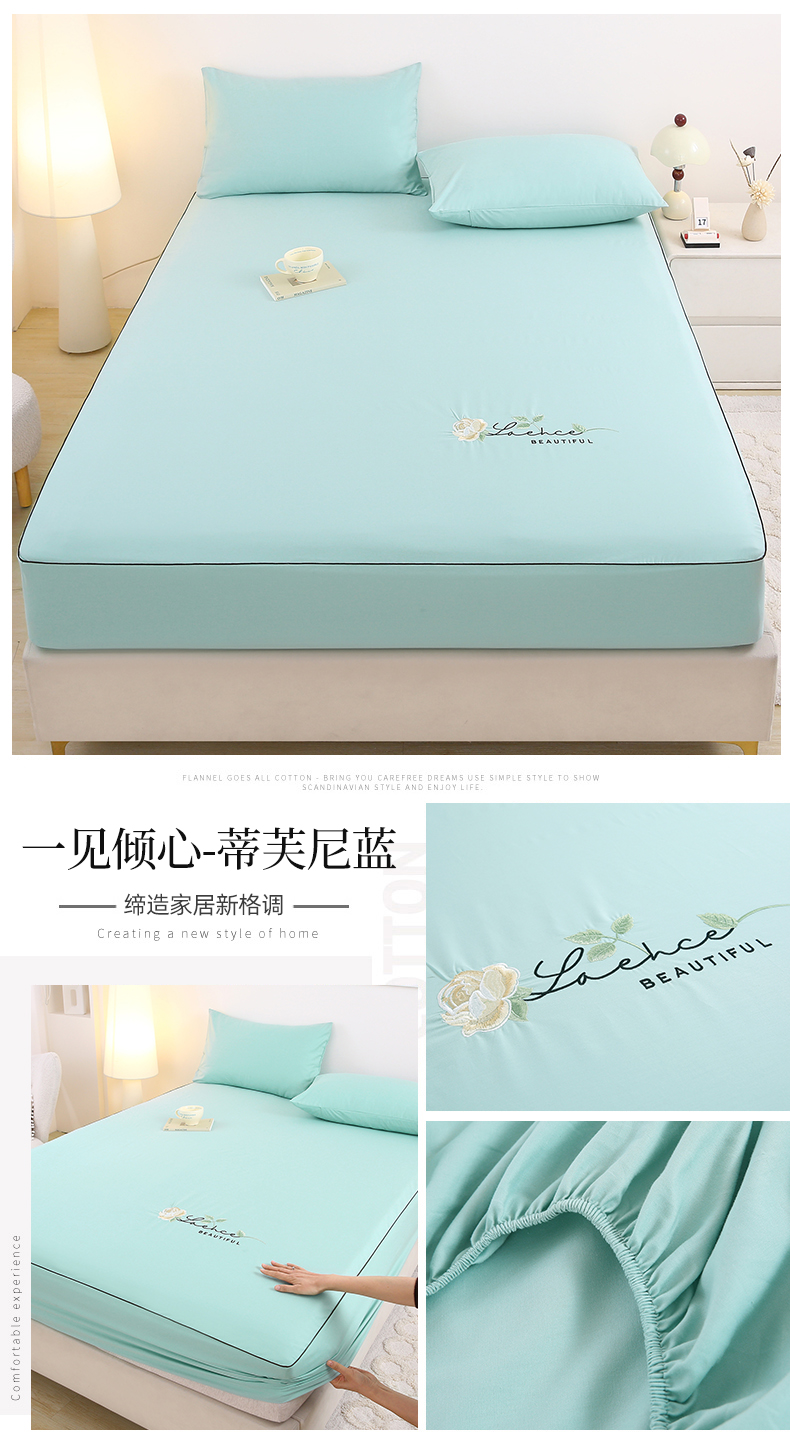 • 91家纺网 家纺一手货源 找家纺 乐逸家纺 2026新款斜纹全棉100%高支高密40支精美刺绣款单层床笠三件套一见倾心系列 一见倾心-复古绿