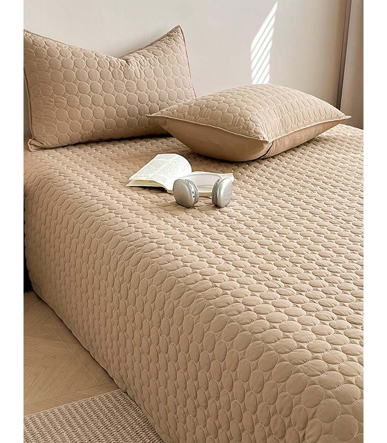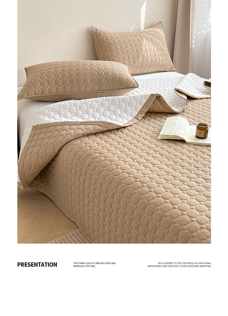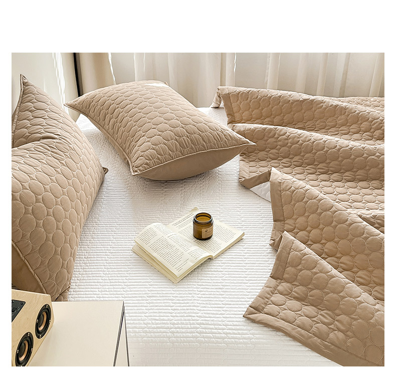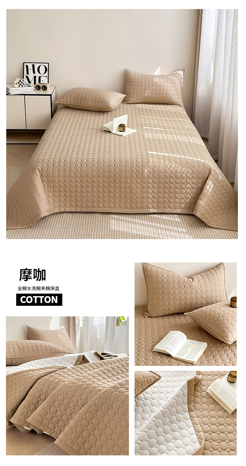 (总)其奥家纺 2026新款全棉水洗棉夹棉床盖三件套-同心圆系列,摩咖,奶白,清新粉,天空蓝,雅灰