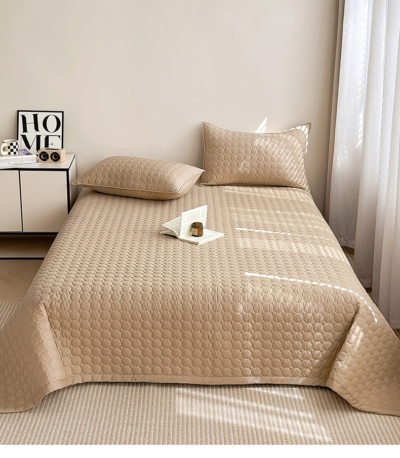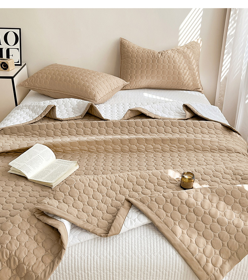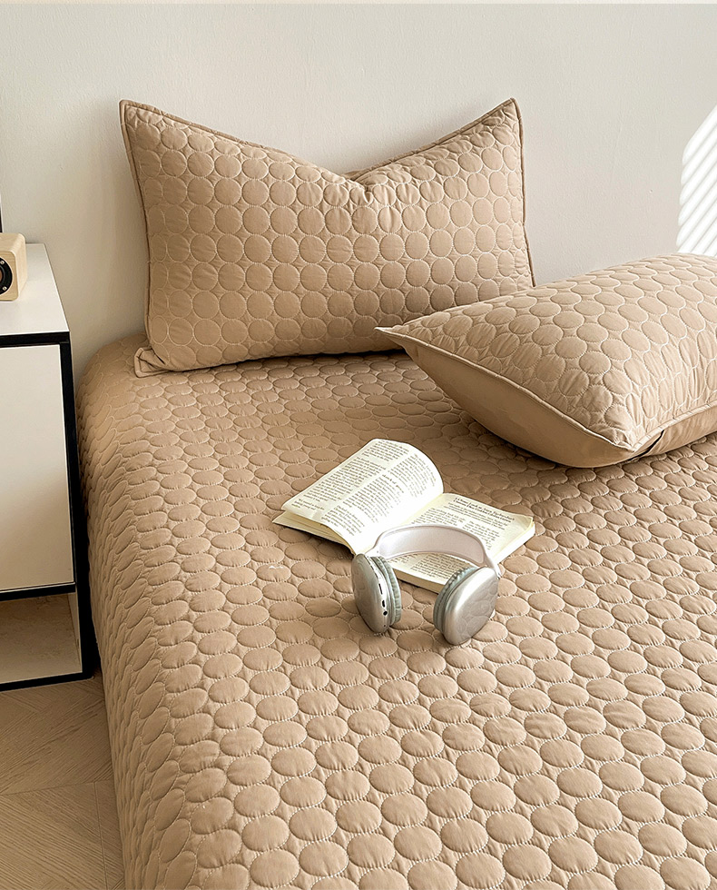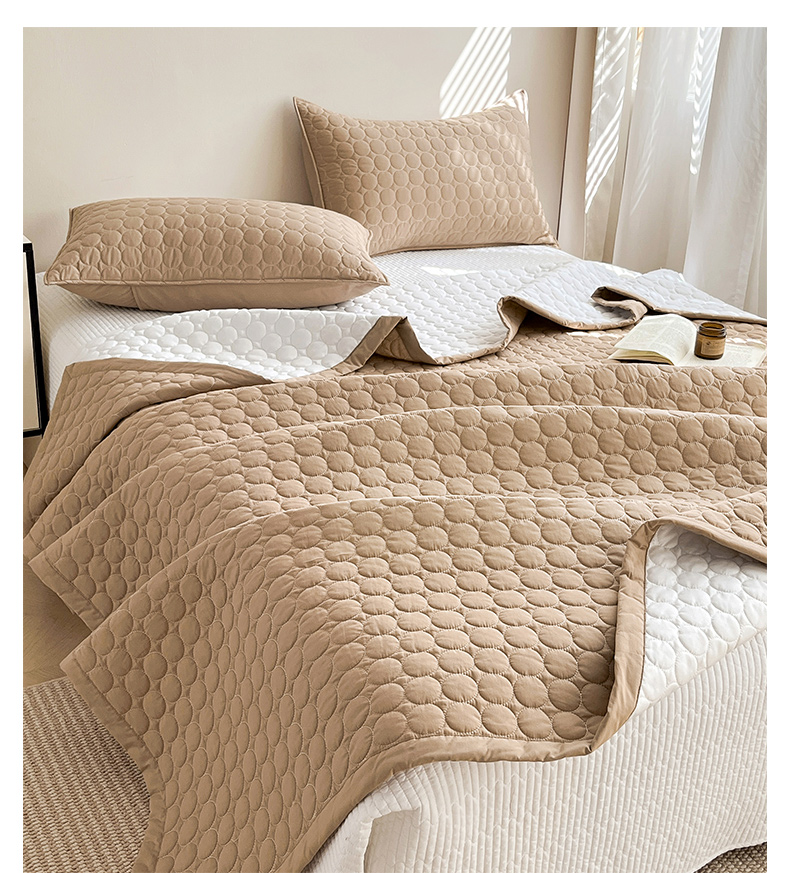(总)其奥家纺 2026新款全棉水洗棉夹棉床盖三件套-同心圆系列,摩咖,奶白,清新粉,天空蓝,雅灰
