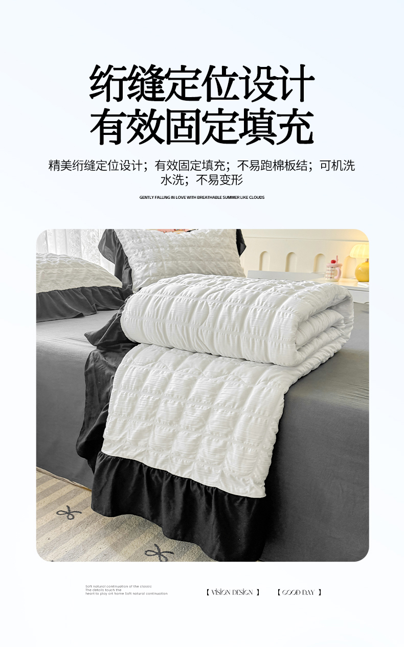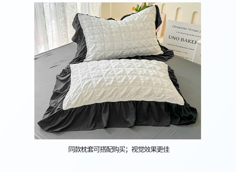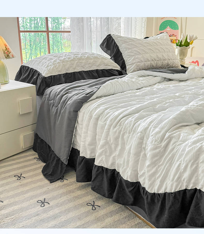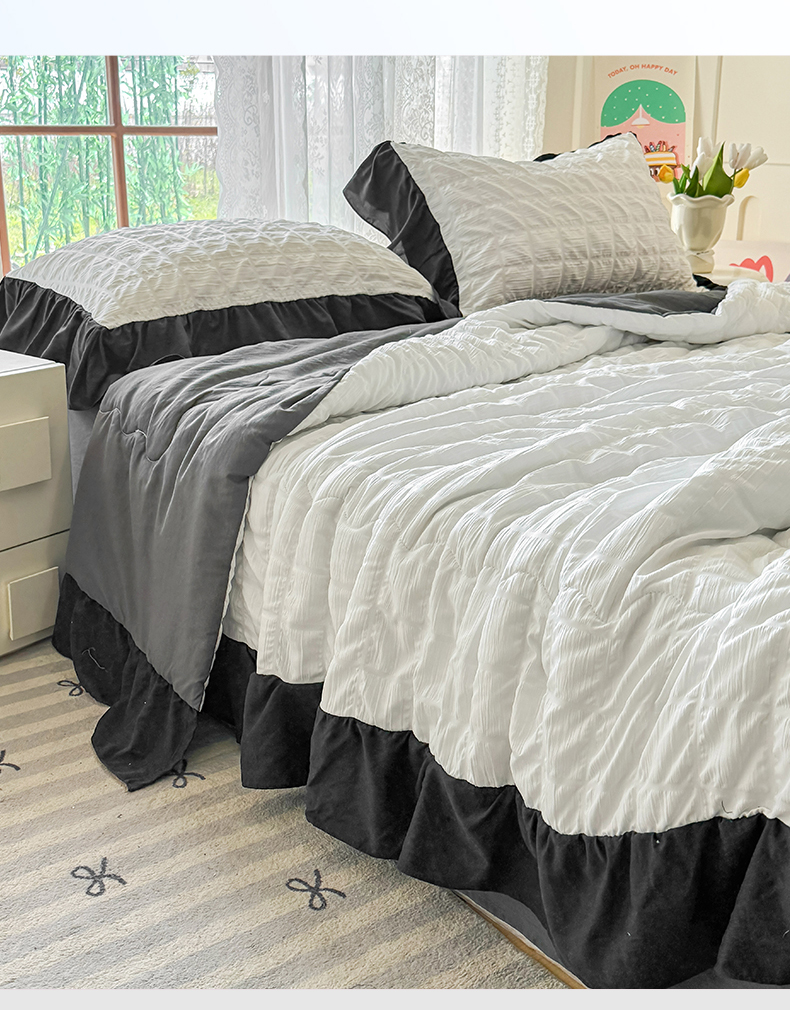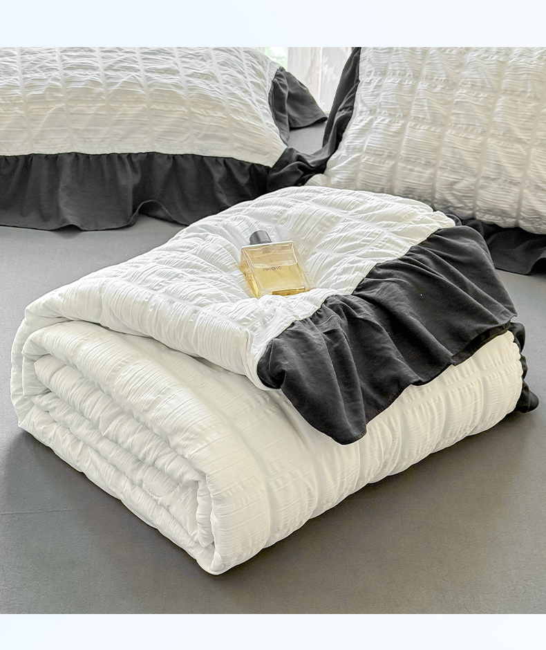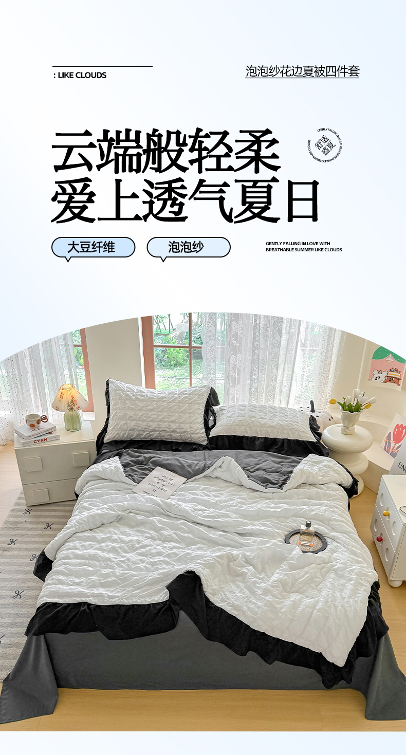 • 91家纺网 家纺一手货源 找家纺 优卡迪家纺馆 2026春夏新款泡泡纱黑花边夏被夏被空调被四件套【下载文件夹包含买家秀】 茉莉奶昔