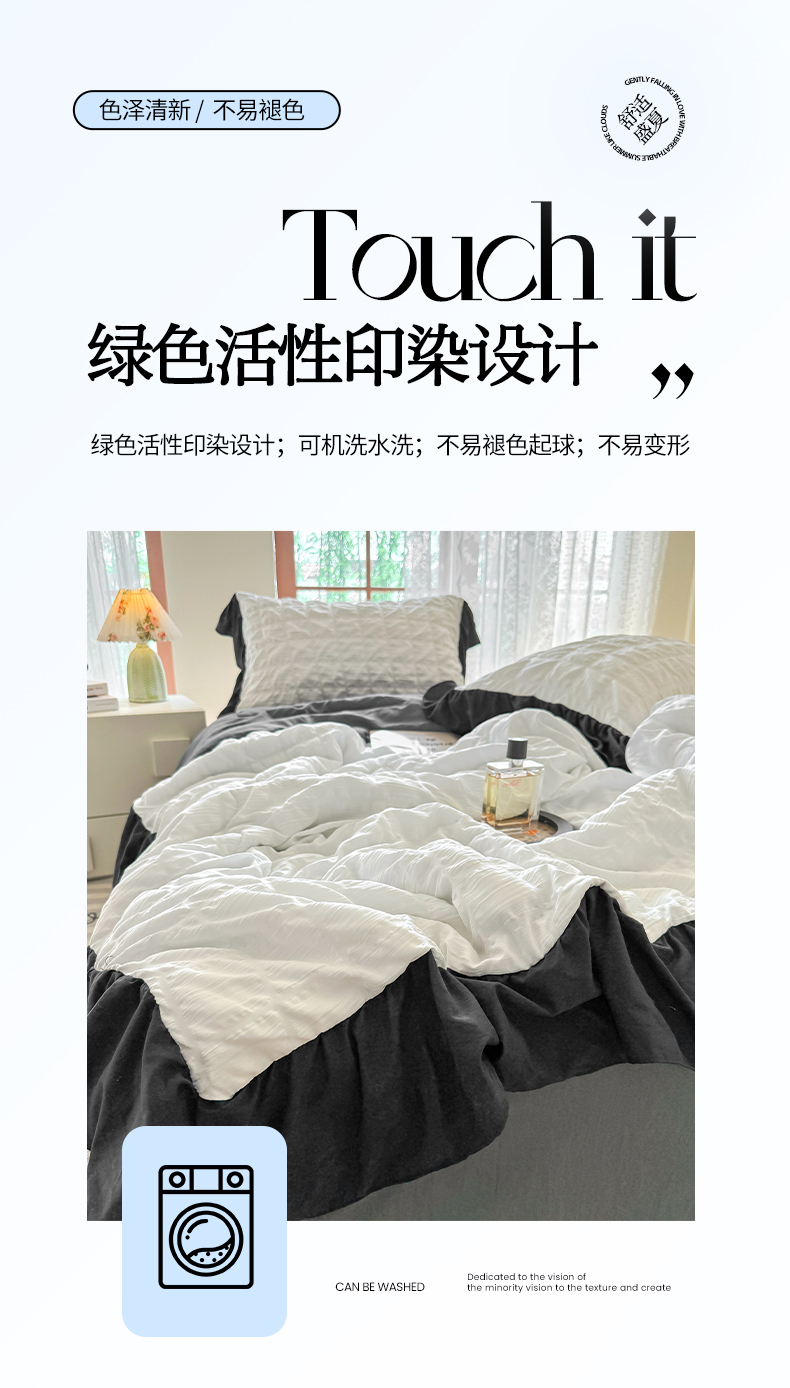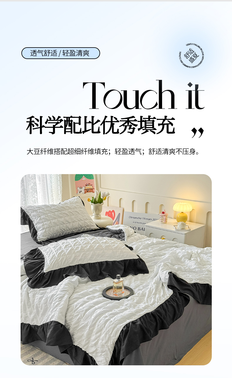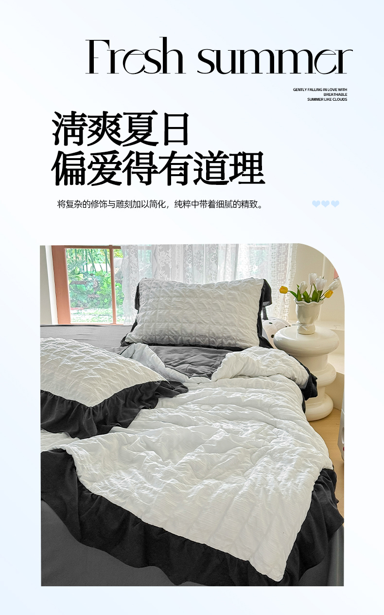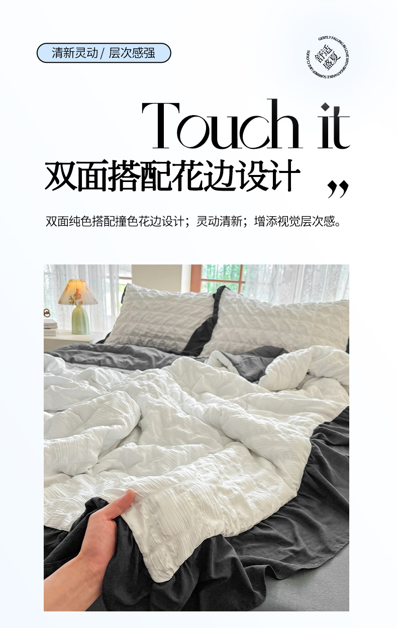 • 91家纺网 家纺一手货源 找家纺 优卡迪家纺馆 2026春夏新款泡泡纱黑花边夏被夏被空调被四件套【下载文件夹包含买家秀】 茉莉奶昔