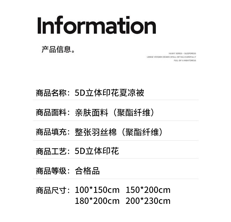 商品名称:(总)永旺家纺 2026新款5D立体印花夏被夏凉被空调被