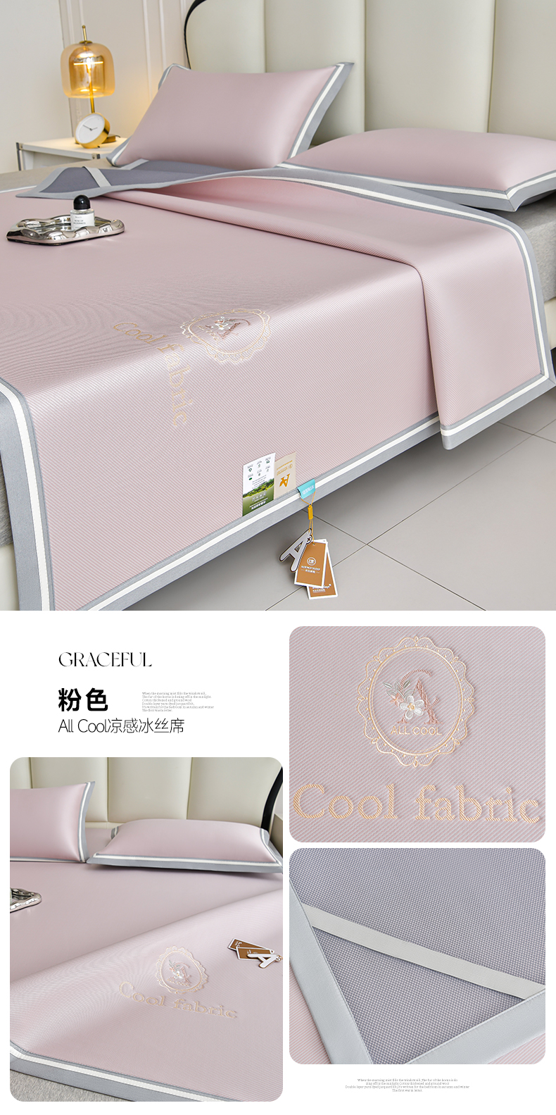 当前位置: 91家纺网 > 商品网购 > 床上用品 > 凉席 > 冰丝席 > 小牛席业 2026新款ALL cool 全凉感绣花凉感冰丝席凉席席子 ALL cool-粉色
