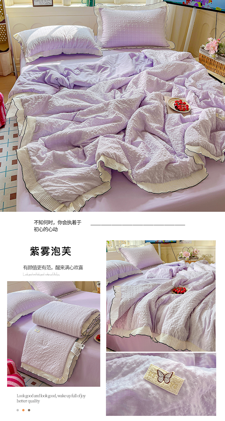 (总)寐居家纺 2026新款A类韩式提花泡芙夏被夏凉被空调被,米柔泡芙,桃桃泡芙,雾灰泡芙,雾蓝泡芙,芽绿泡芙,紫雾泡芙,组合图仅供展示-不可下单