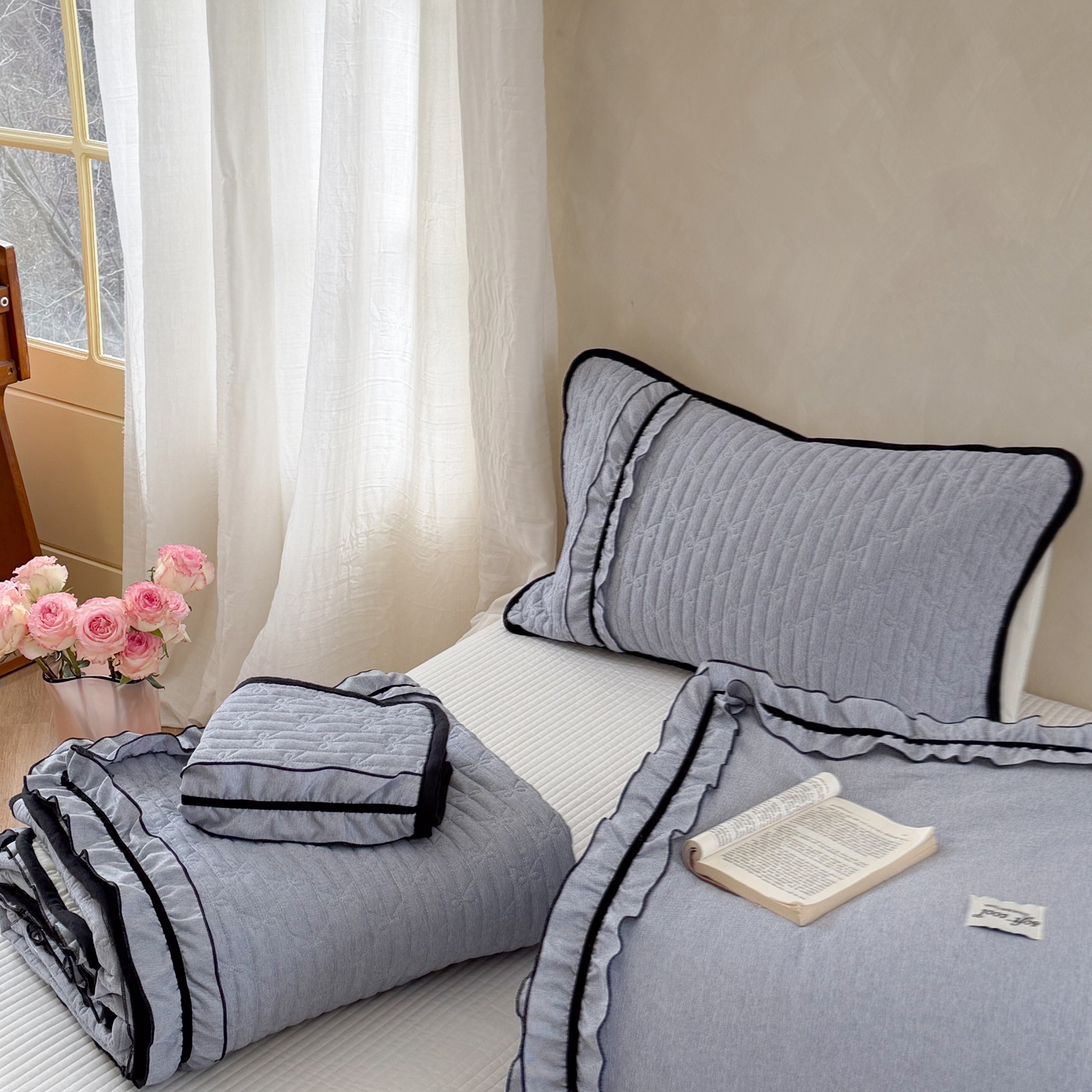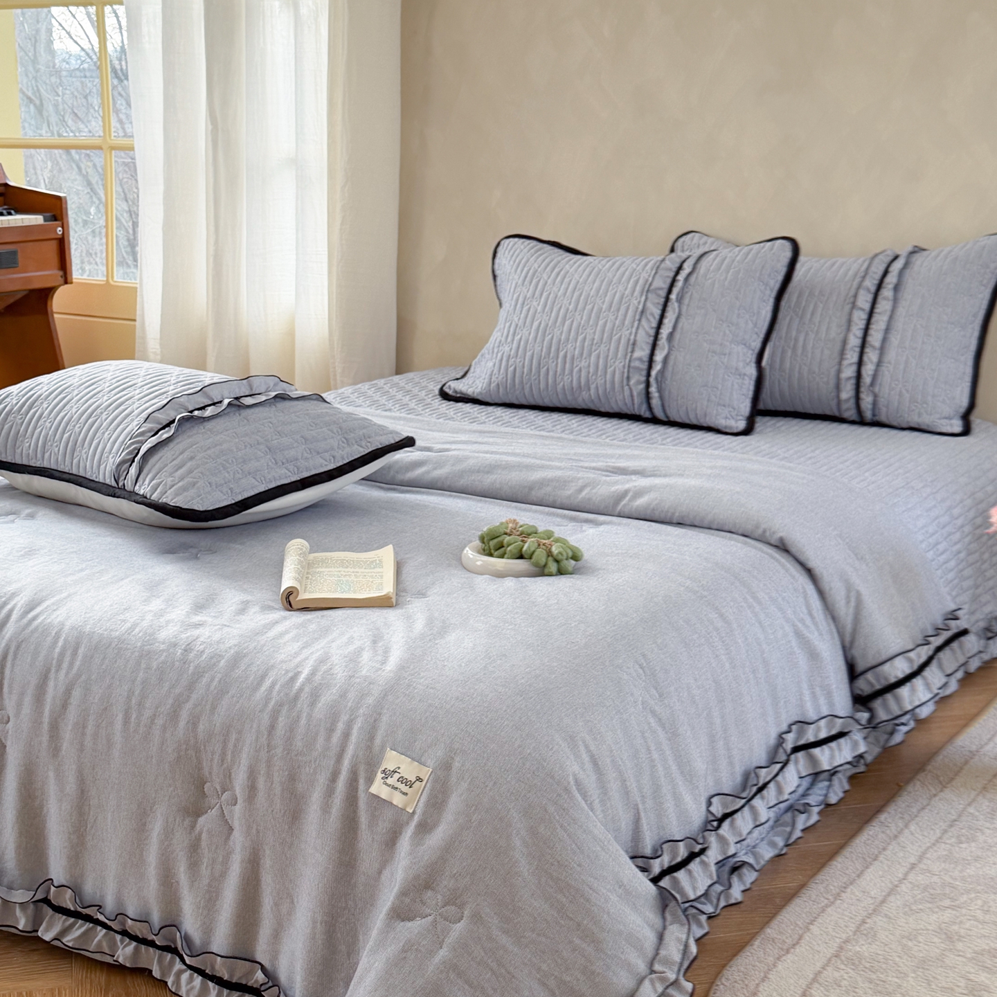 商品名称:寐居家纺 2026新款雨露麻夏被床盖四件套 雨露-信风灰