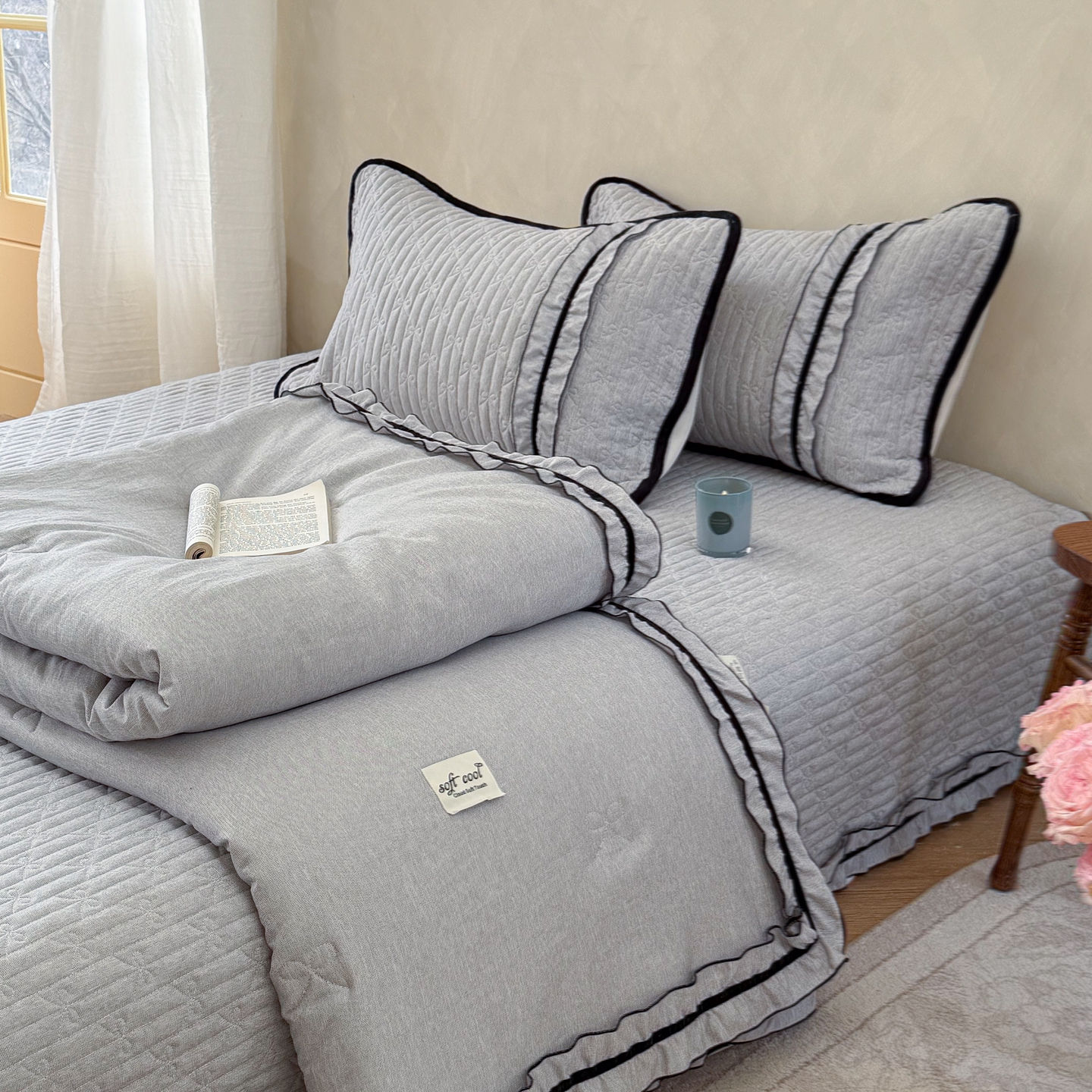 寐居家纺 2026新款雨露麻夏被床盖四件套 雨露-信风灰