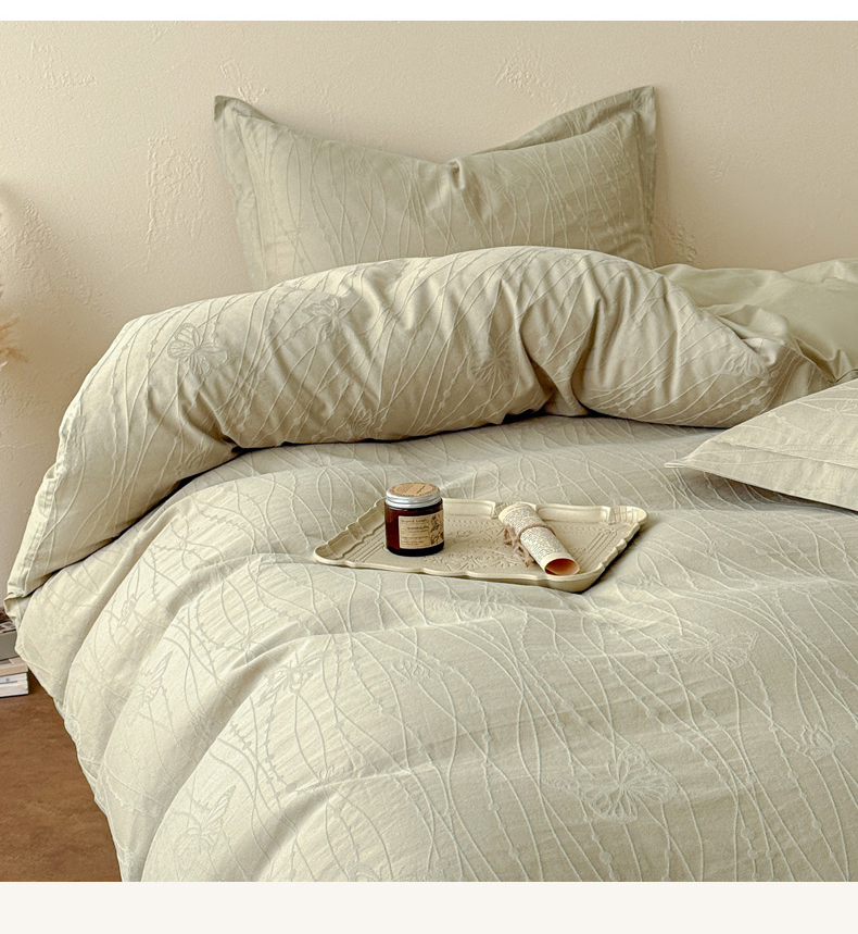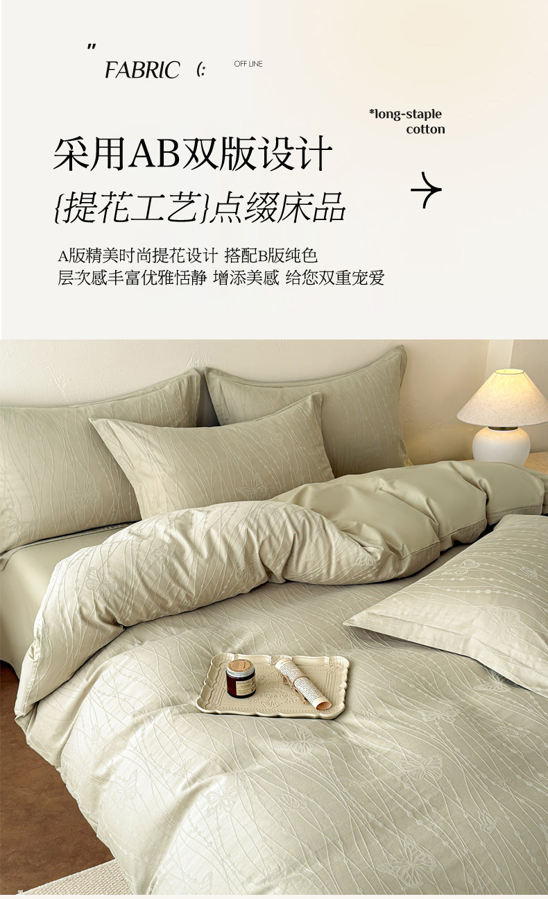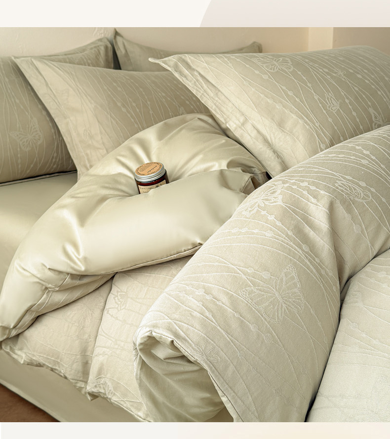 当前位置: 91家纺网 > 商品网购 > 床品套件 > 四件套 > 长绒棉四件套 > 慕尚家纺 2026新款A类60支长绒棉纯棉提花贡缎大提花光泽绸缎感四件套 线条蝴蝶绿