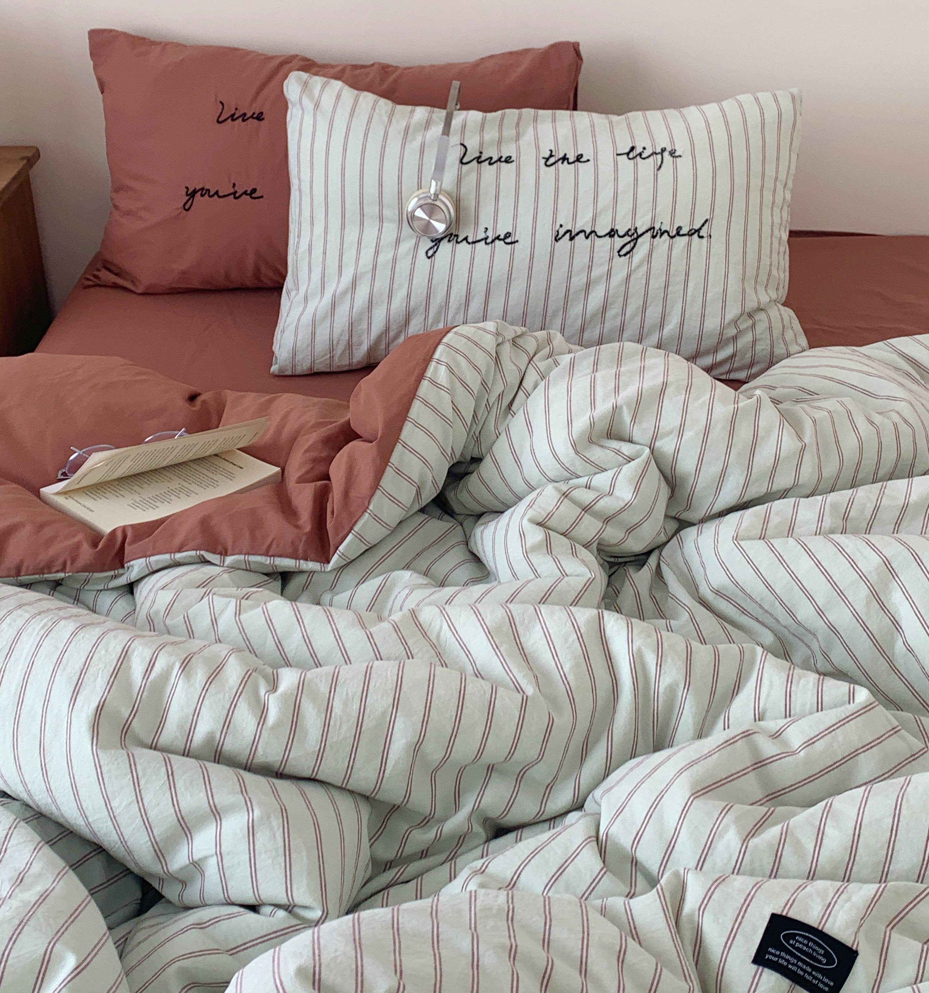 当前位置: 91家纺网 > 商品网购 > 床品套件 > 四件套 > 全棉普通四件套 > 桃喜 2026春夏全棉新品色织水洗棉条纹博主ins风四件套学生三件套(会员-5) 红茶拿铁