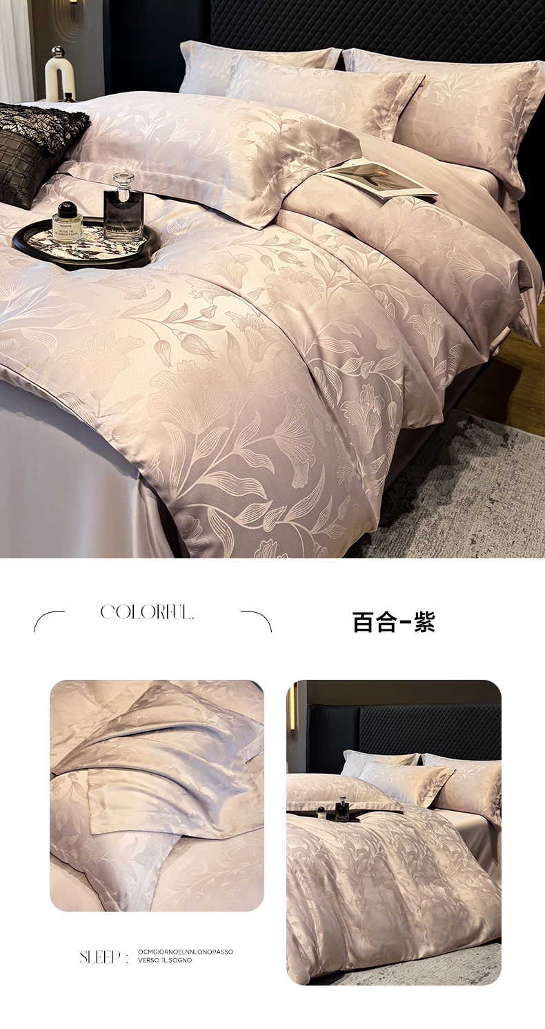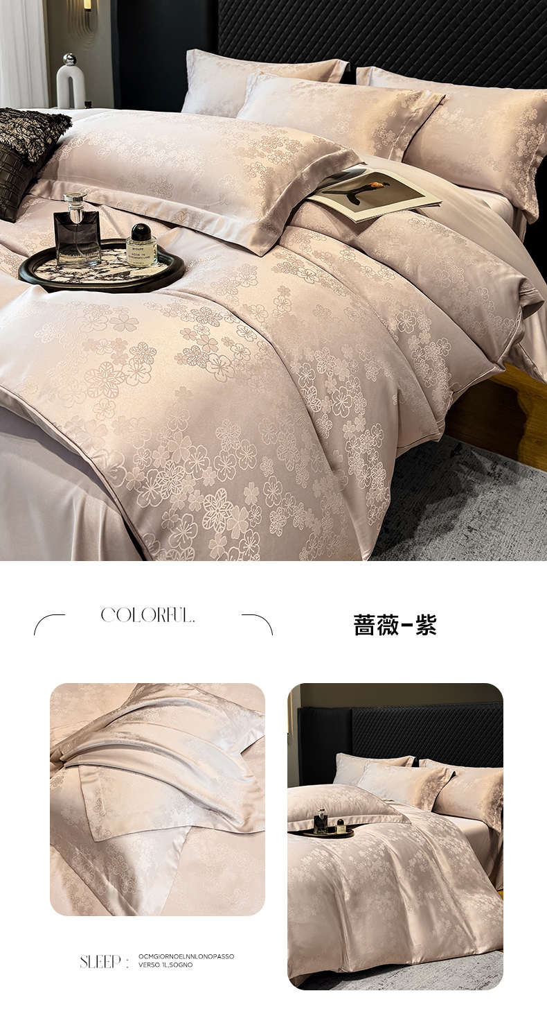 当前位置: 91家纺网 > 商品网购 > 床品套件 > 四件套 > 化纤普通四件套 > 奥汀洛家纺 2026春夏新款水洗冰丝亮丝提花四件套 蔷薇-紫