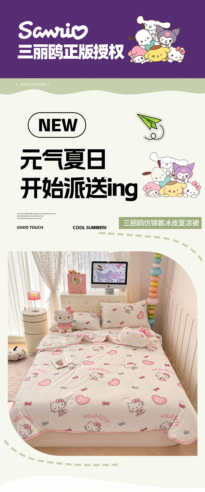(总)暮思家居 2026新款正版授权三丽鸥A类仿锦氨小冰皮夏被夏凉被空调被,小冰皮-乖巧KT,小冰皮-KT美乐蒂,小冰皮-巴库库洛米,小冰皮-点点玉桂狗,小冰皮-公主KT,小冰皮-蝴蝶结美乐蒂,小冰皮-花花美乐蒂,小冰皮-可爱KT,小冰皮-泡泡布丁狗,小冰皮-甜品玉桂狗,小冰皮-甜筒KT-白,小冰皮-甜筒KT-粉,小冰皮-小熊KT,小冰皮-幸福KT