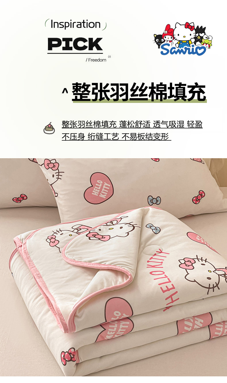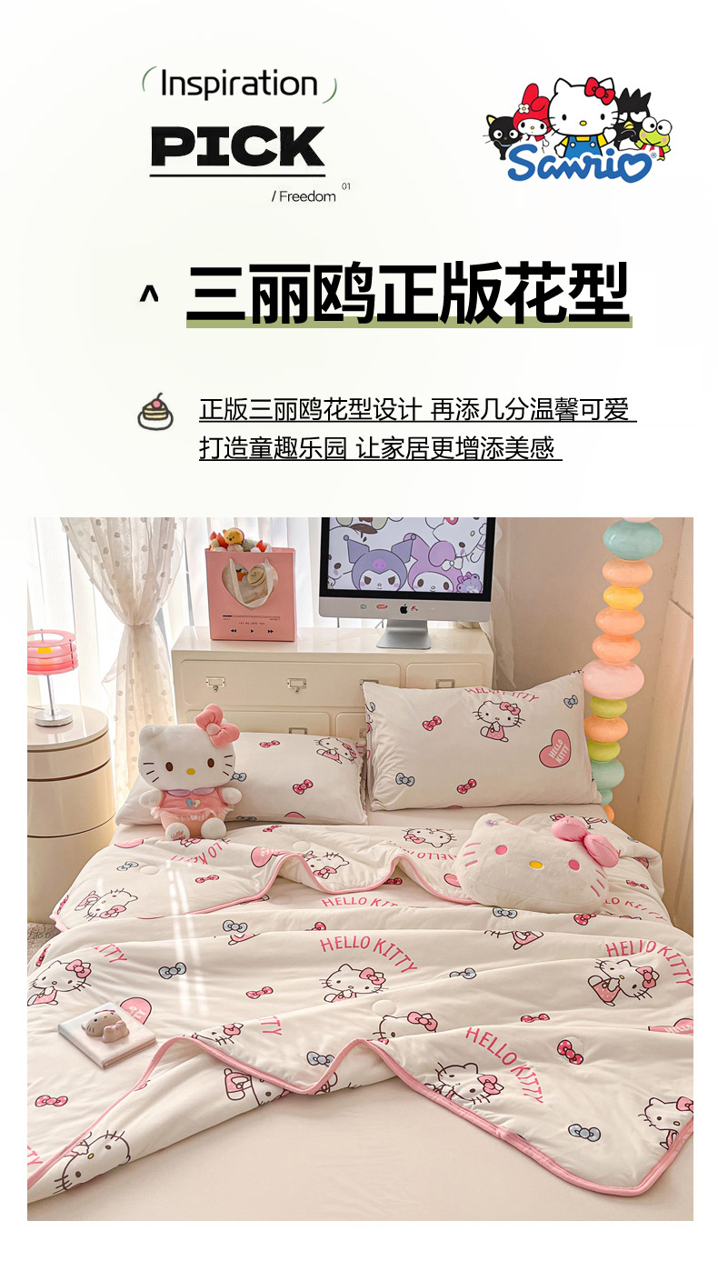 (总)暮思家居 2026新款正版授权A类大版数码印花三丽鸥可组合仿锦氨夏被夏凉被空调被,草莓KT,甜筒KT,豹纹KT猫,草莓美乐蒂,蛋糕美乐蒂,格子KT,公主美乐蒂,蝴蝶结KT,花园美乐蒂,开心玉桂狗,快乐玉桂狗,美美KT,梦幻KT,梦想库洛米,奶油KT,甜蜜库洛米,条纹美乐蒂,晚安玉桂狗,相框美乐蒂,香水KT,小兔美乐蒂,小熊玉桂狗,幸福KT,幸福大耳狗,炫彩库洛米,云朵玉桂狗