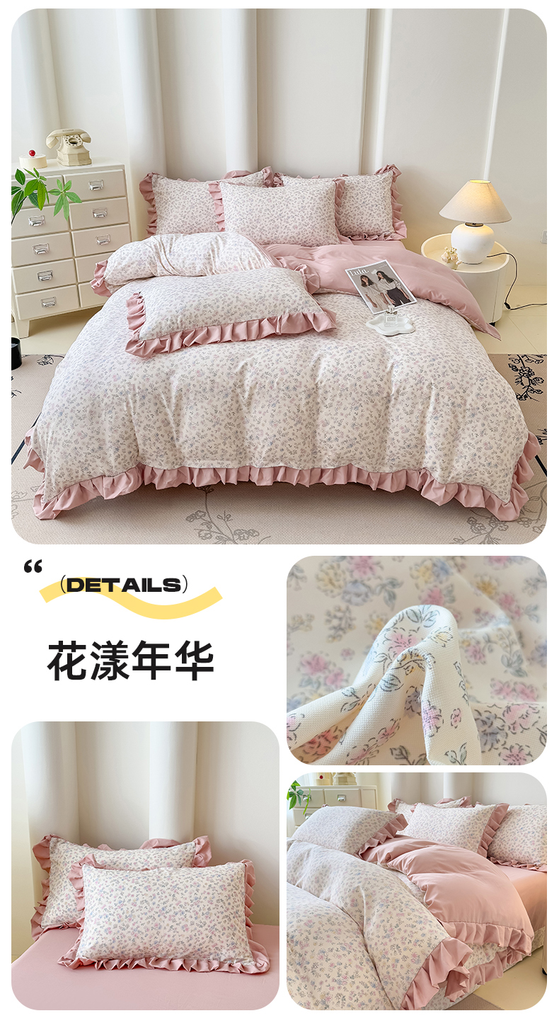 当前位置: 91家纺网 > 商品网购 > 床品套件 > 四件套 > 其它四件套 > 晚爱家纺(原晚安家居) 2026韩版花边四件套 有氧针织双层纱天竺棉超柔小清新四件套 安琪拉