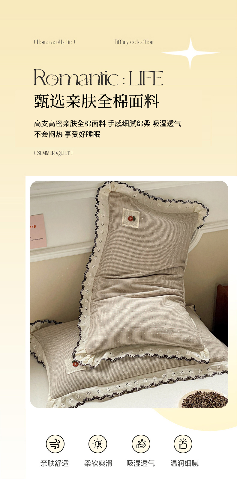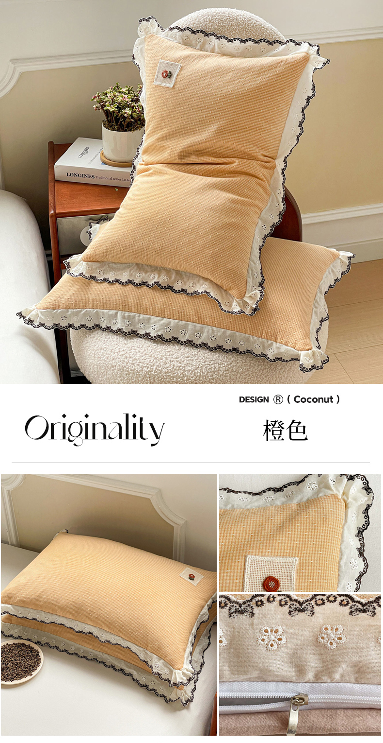 商品名称:梦叶草 2026新款全棉马卡龙蕾丝荞麦枕法式风枕枕头枕芯 马卡龙蕾丝荞麦枕-橙色