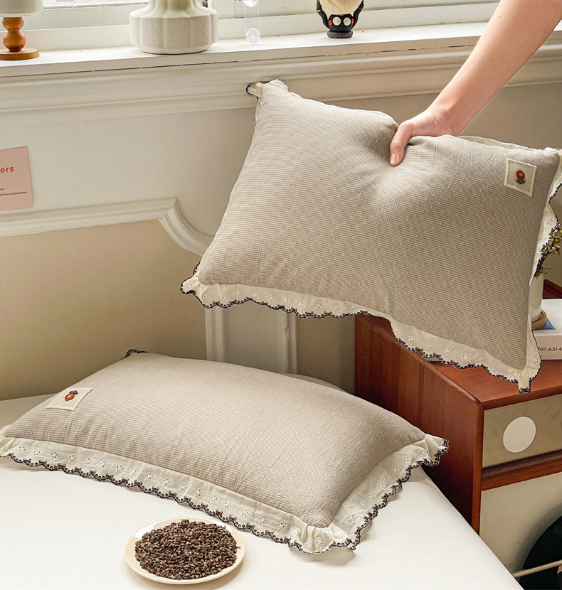 (总)梦叶草 2026新款全棉马卡龙蕾丝荞麦枕法式风枕枕头枕芯,马卡龙蕾丝荞麦枕-橙色,马卡龙蕾丝荞麦枕-粉色,马卡龙蕾丝荞麦枕-灰色,马卡龙蕾丝荞麦枕-绿色