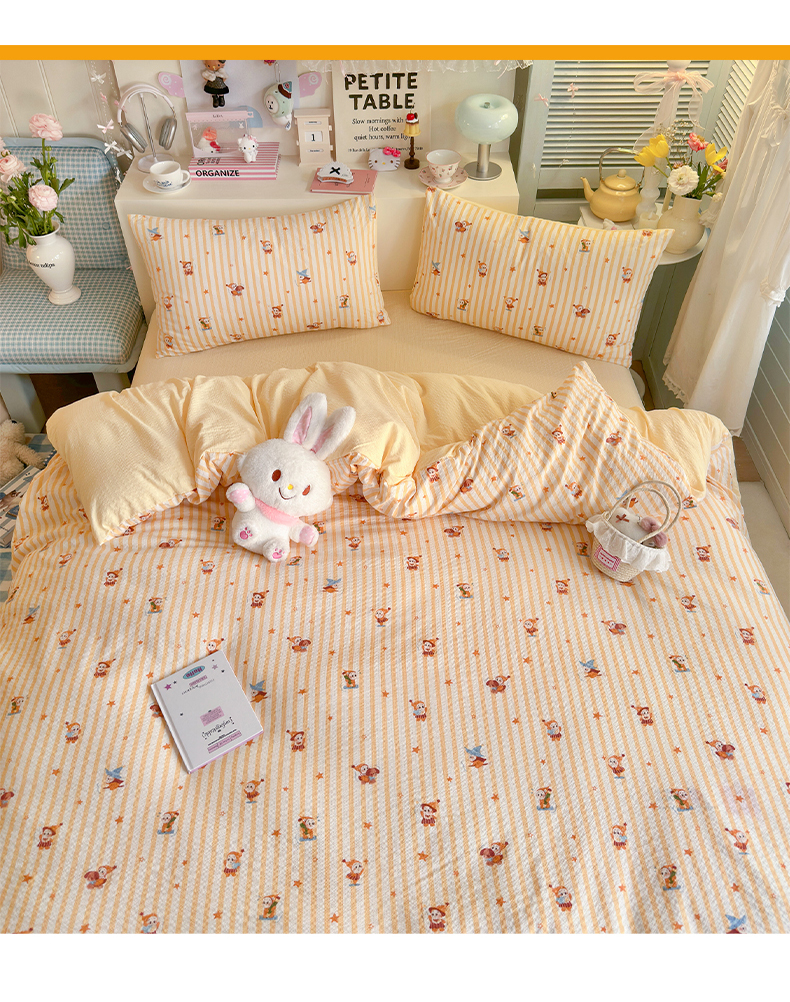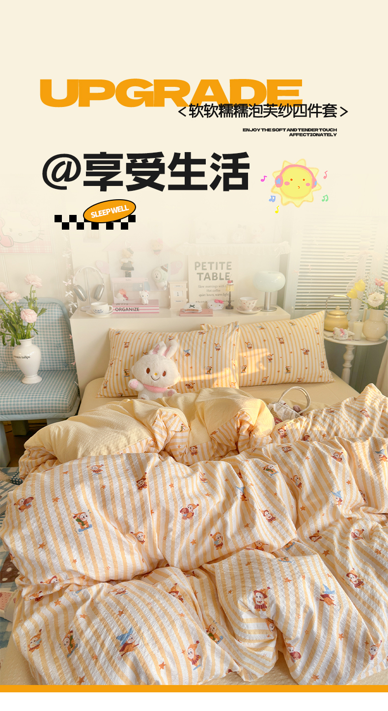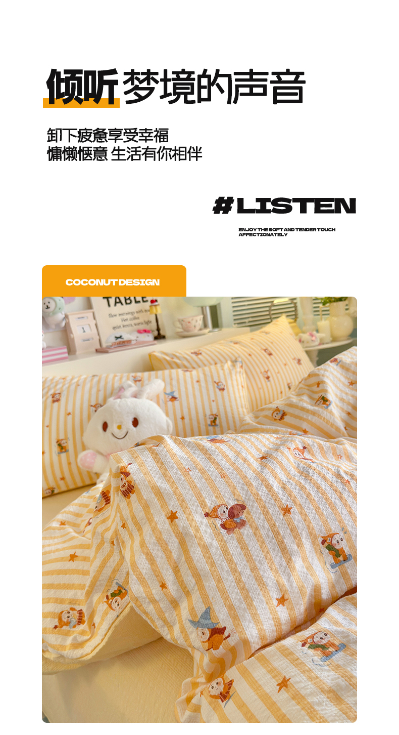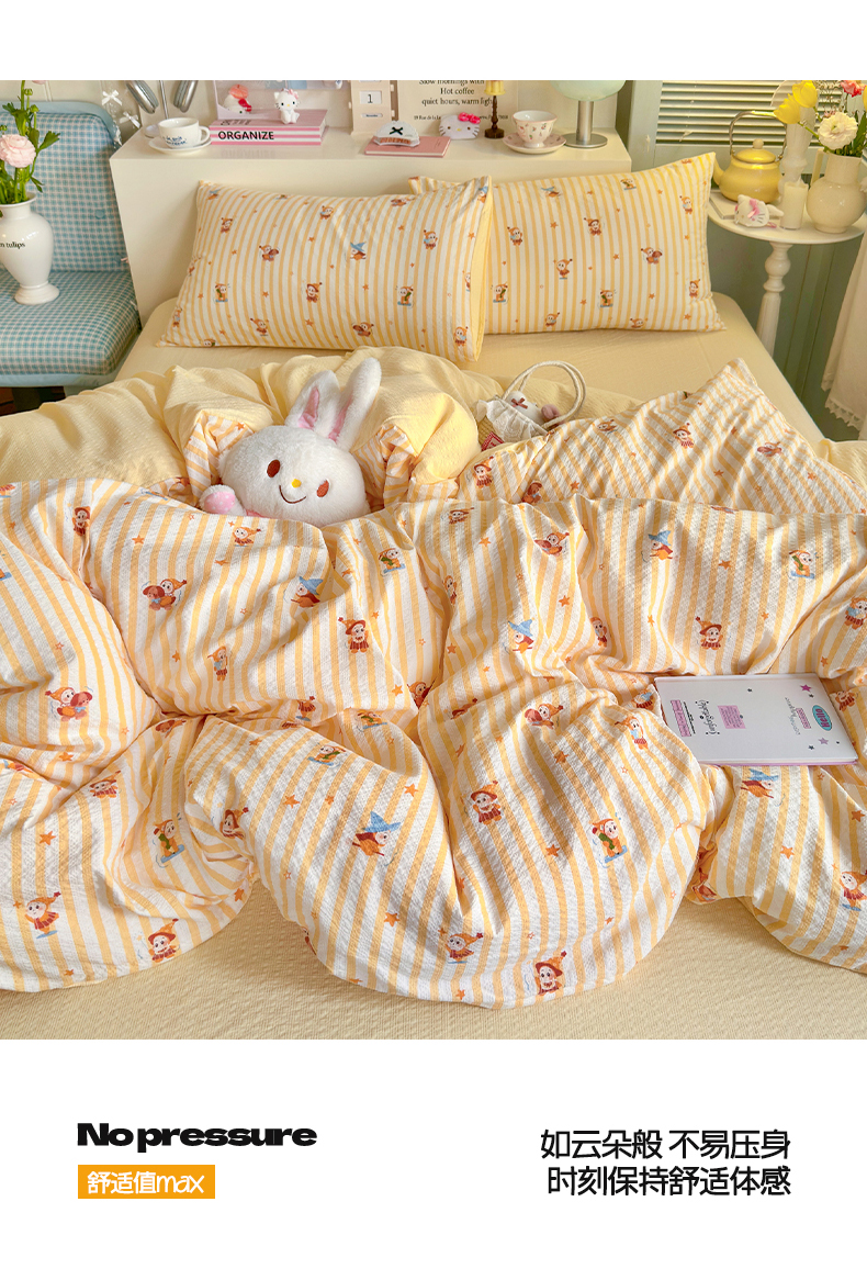 当前位置: 91家纺网 > 商品网购 > 床品套件 > 四件套 > 双层纱四件套 > 铺尚美家纺 2026新款小清新110g高品质直播热卖款A类泡芙棉双层纱四件套 星星人